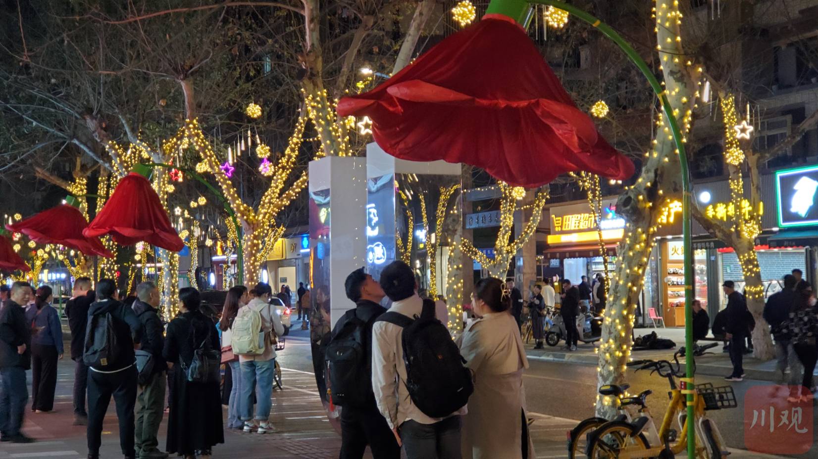 “感觉很浪漫!”来自河北的游客陈女士告诉川观新闻记者,她来成都之前就知道玉林西路和杉板桥路的“开花路灯”,当晚她和闺蜜们来到玉林,一是想感受成都丰富多彩的夜生活,另外就是专门来打卡“开花路灯”,“美丽花儿在夜晚向每一位行人绽放,这才是春天的感觉。”