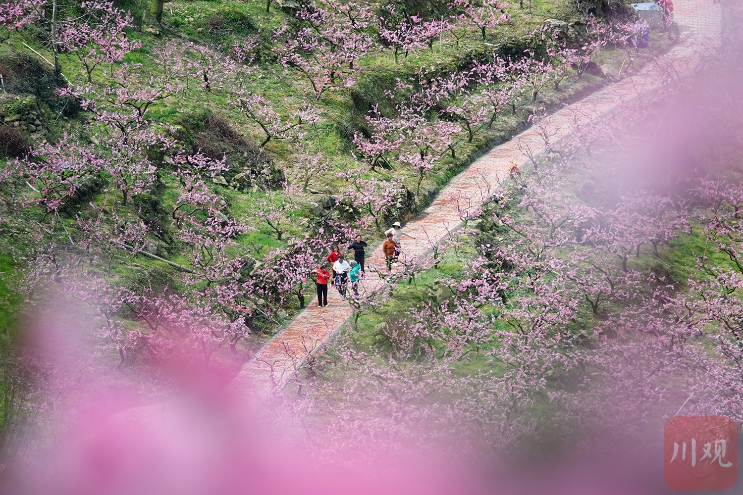 近日,金堂县又新镇桃花基地迎来盛花期,置身其中,仿佛来到世外桃源。占地百亩的桃花园,漫山遍野绯红一片,迎来众多游客打卡拍照。