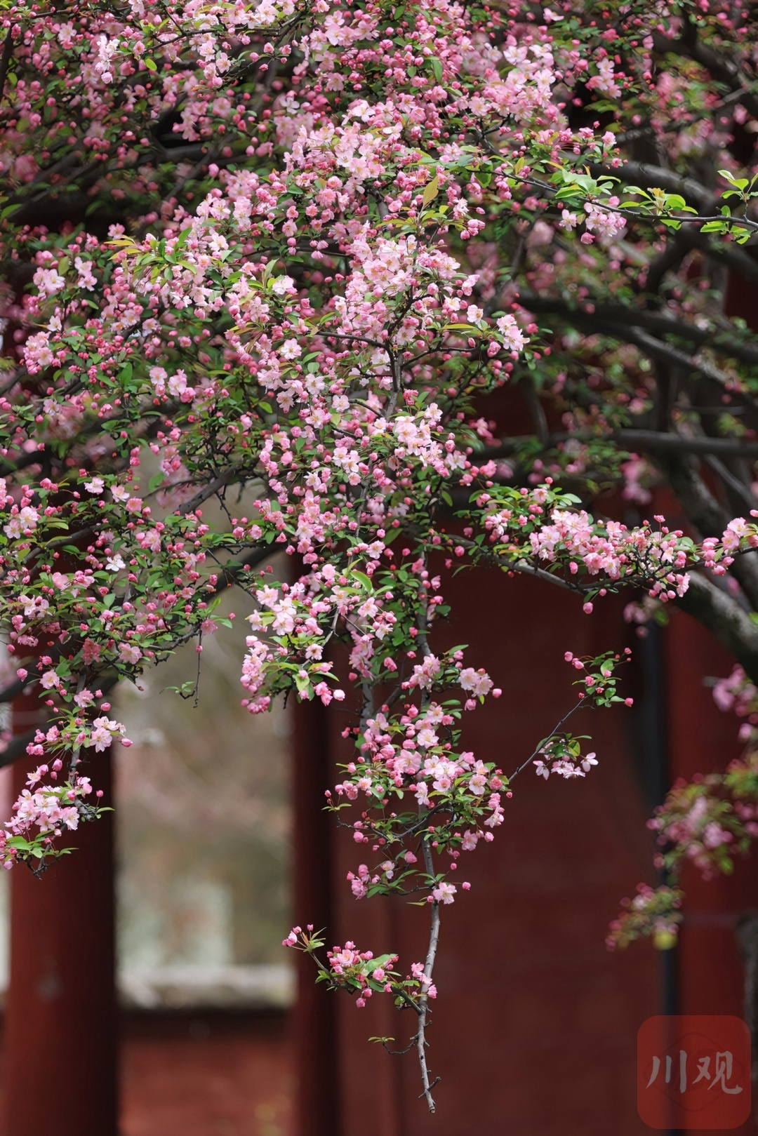 3月12日,川观拍客走进崇州罨画池,这里春光明媚,红墙绿瓦映衬鲜艳的海棠、迎春花,在春风中摇曳,散发出淡淡的清香。