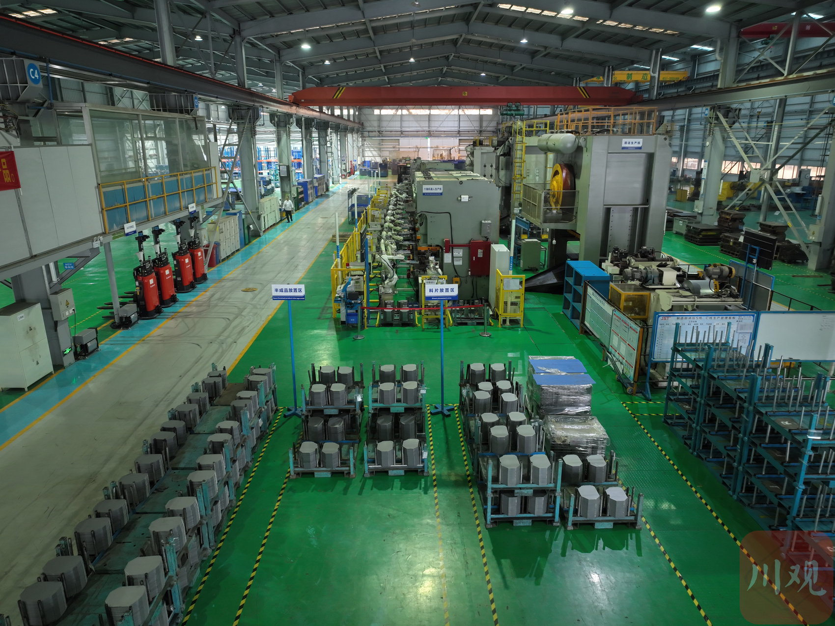 走进投用一年多的数字工厂,干净、整洁是第一印象。上千平方米的生产车间里,按生产工序设置了不同的自动化生产线,其中,15个机器人的单冲线,可根据参数设置,生产该厂需要的所有型号冲压件,自动化程度居全国前列;2500吨的全自动化多功能冲压系统,一键即可生产……