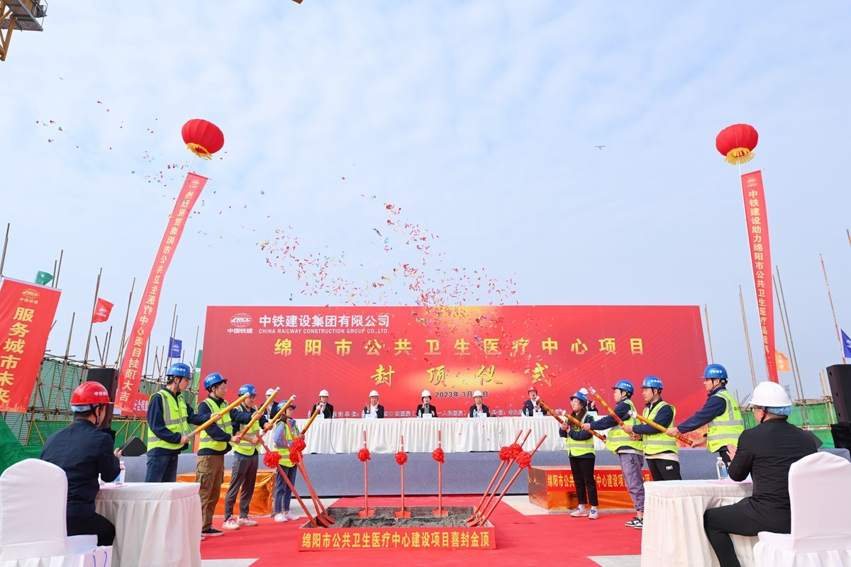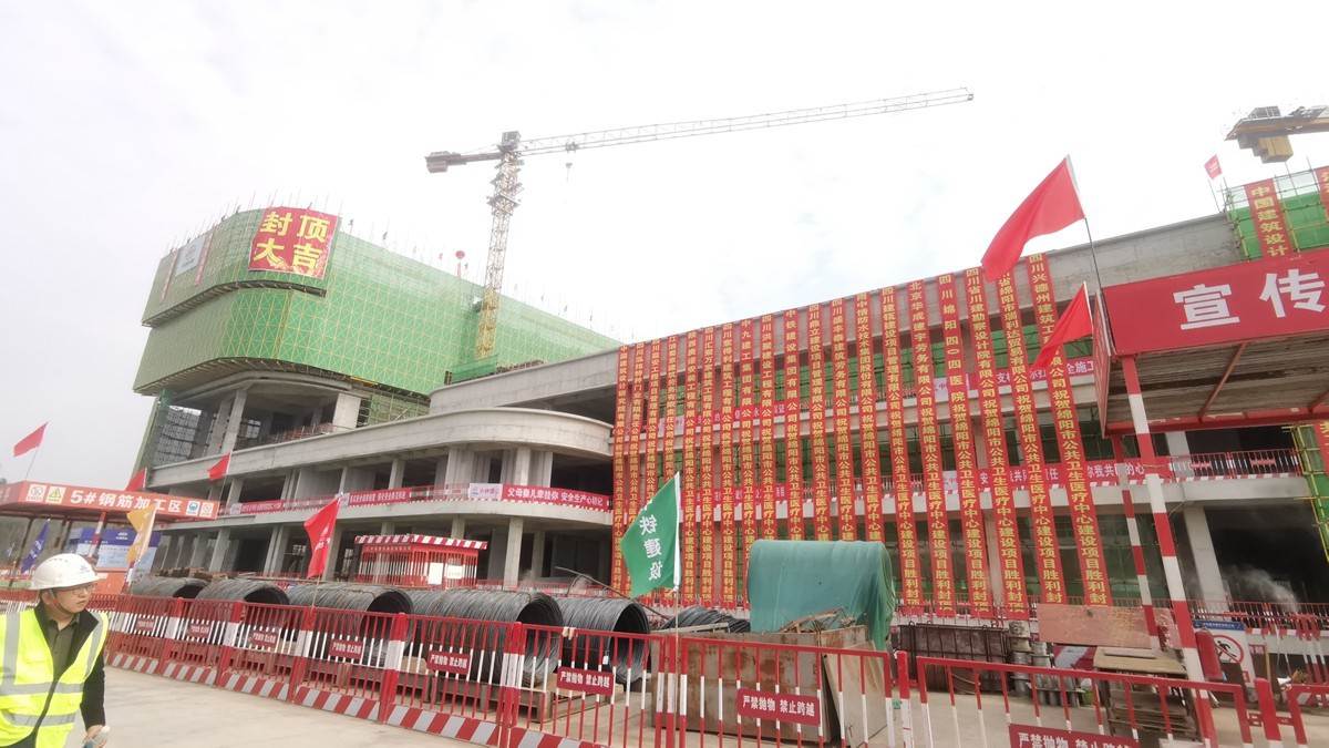 绵阳市公共卫生医疗中心建设项目主体结构全面封顶 图片作者 孙海峰
