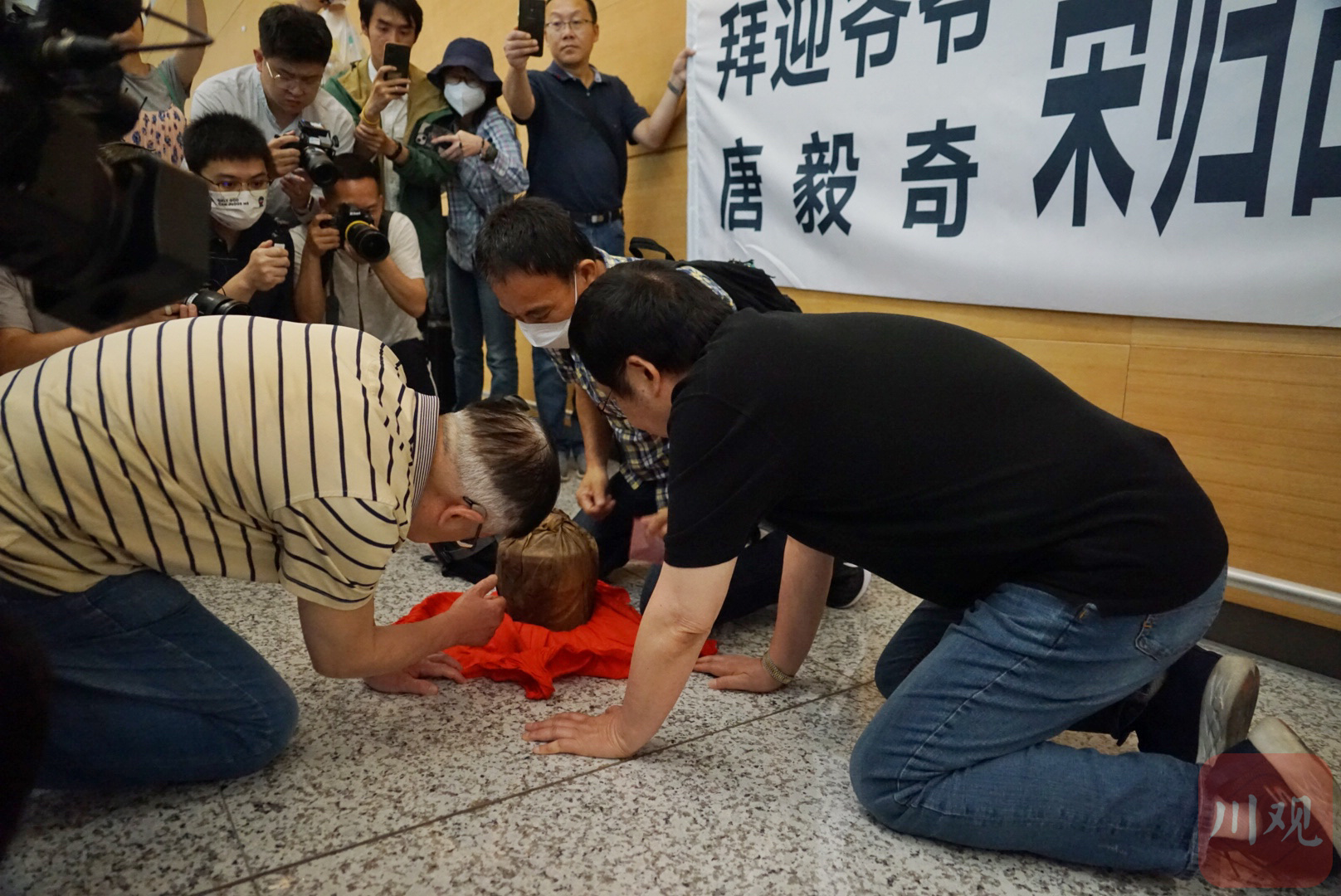 终于,今天刘德文陪着唐毅奇“踏”上了归家路。机场接机口,唐毅奇的家人早已在这等候多时,唐清泽更是目不转睛地盯着出口。