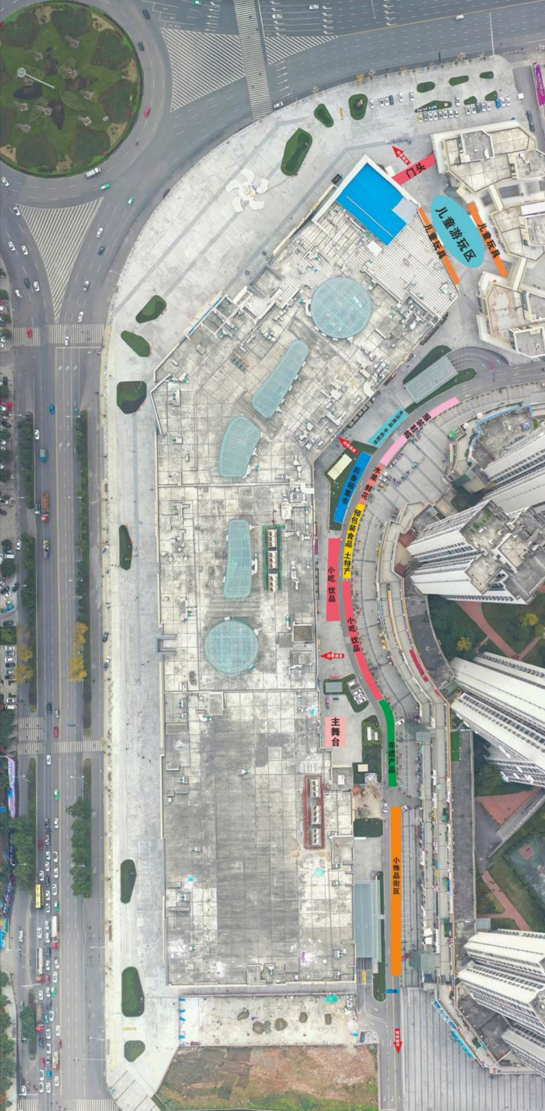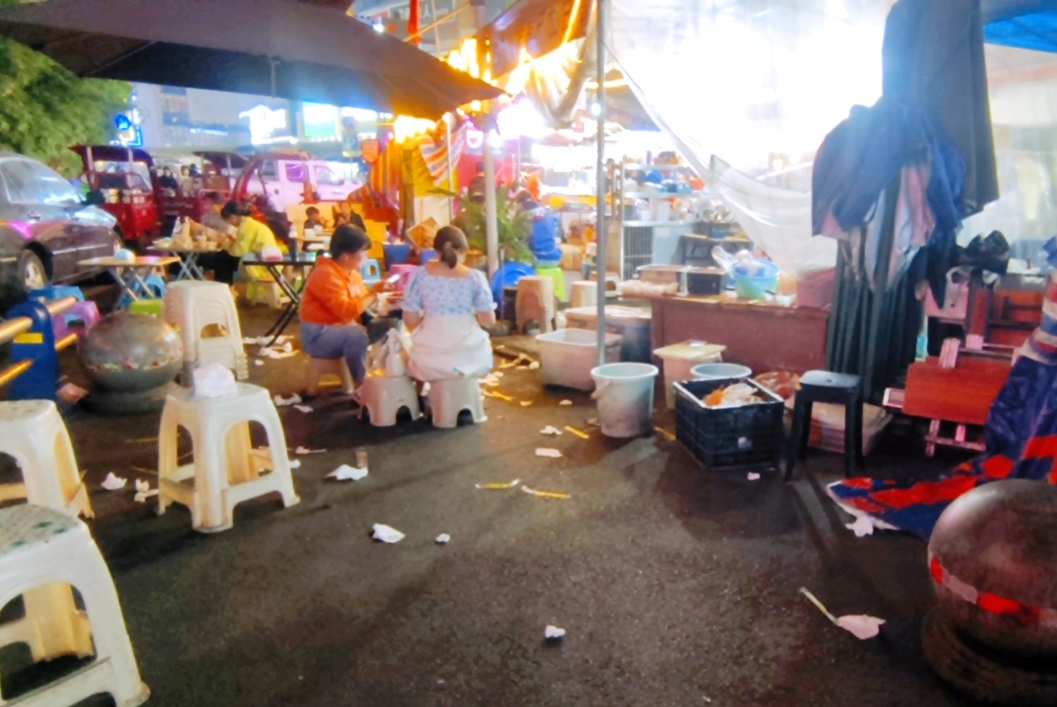 夜市摆摊区域偏移,目前占了一部分小区公摊面积