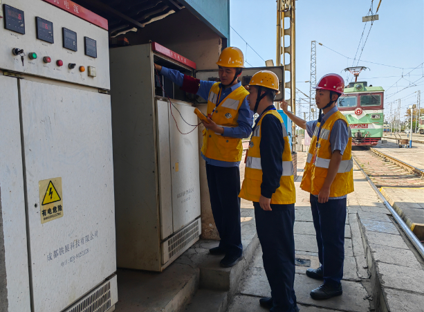 敖天杨带领车间职工对整备场牵车机内部各电器元件状态进行检查