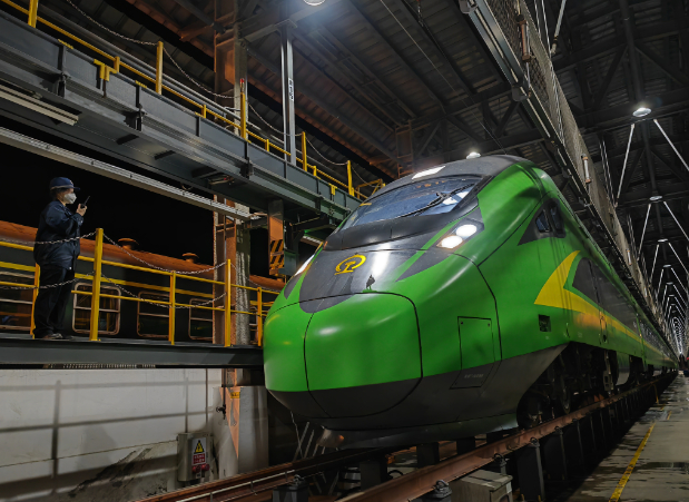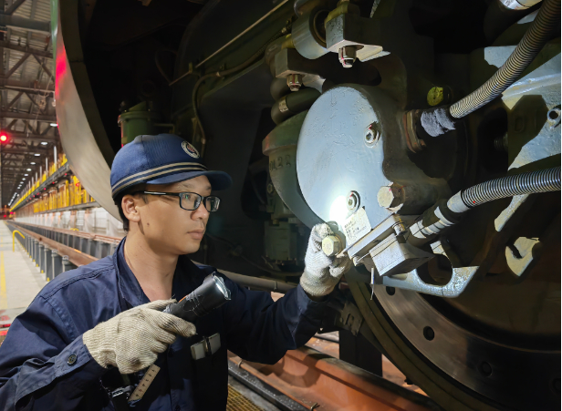 此外,针对复兴号动车组的防洪防汛工作,机车检修人对DSA250型受电弓参数的静态做到趟趟监测,同时,对走行部、头灯、雨刷、扫石器、撒砂系统、防空转系统开展重点检查试验和数据检测分析,确保复兴号动车组健康上线。