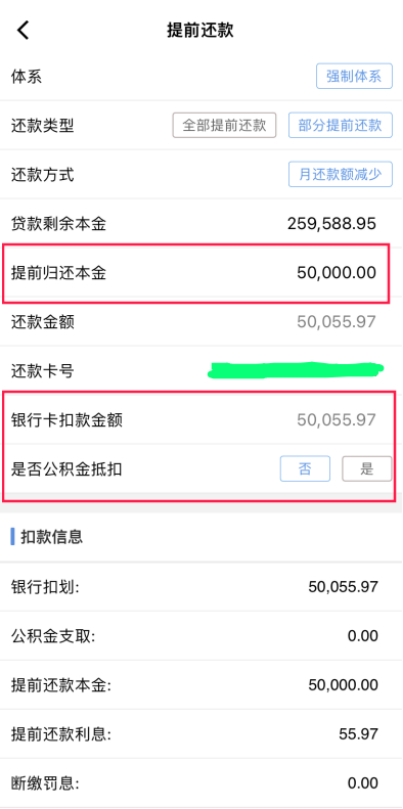 第二步:完成还款卡变更后,在成都公积金app上完成提前还款操作,是否公积金抵扣选择“否”,录入提前归还本金。确保个人建行数字人民币钱包内余额充足,不少于app显示的银行卡扣款金额。