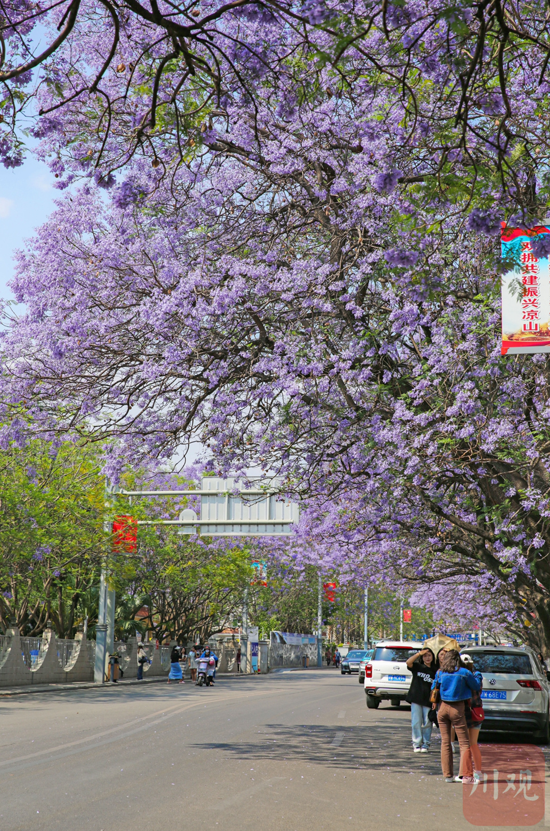 五月初始,西昌航天北路蓝花楹迎来绽放期,微风过处,花瓣翩翩,仿佛进入了一片蓝紫色梦幻的世界,吸引了不少市民和游客前来拍照打卡。