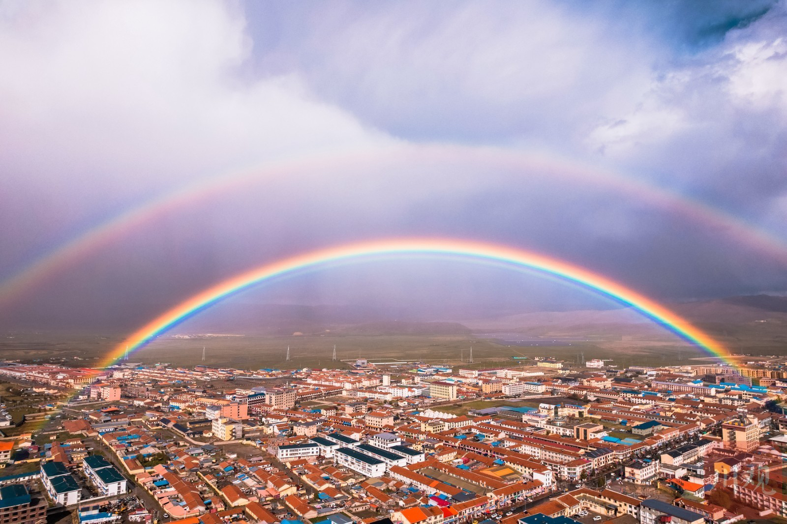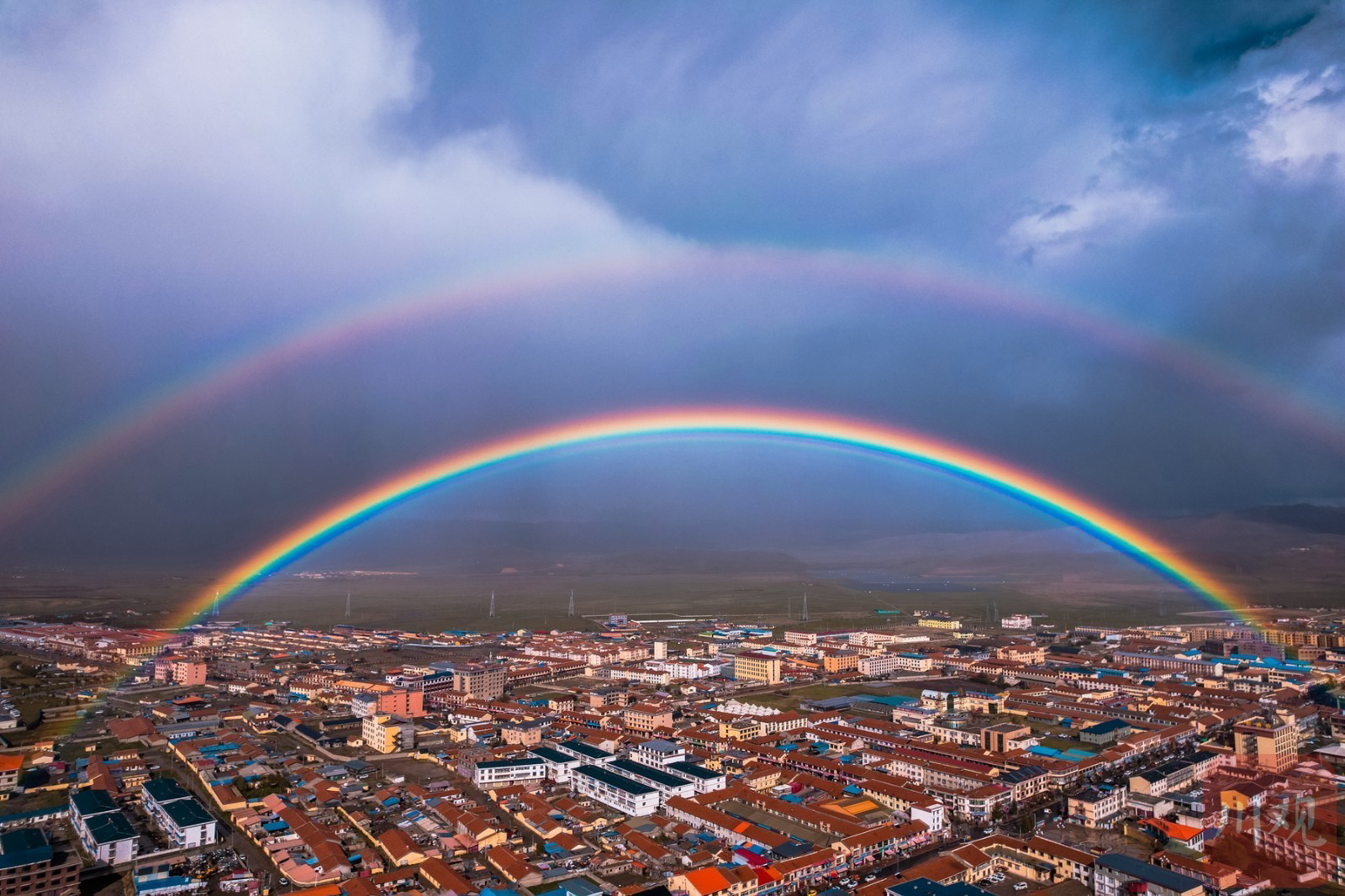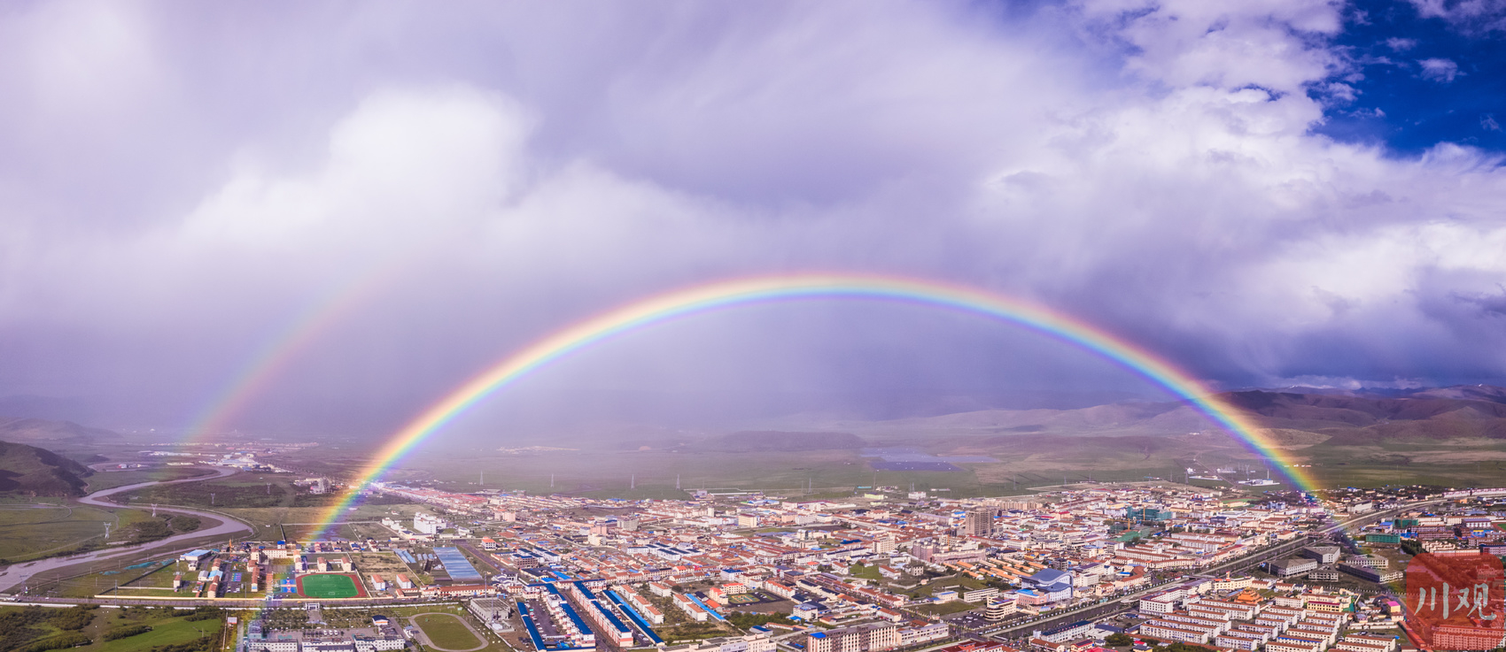近日,在阿坝州红原县的天空上演梦幻“双彩虹”奇景,据了解,这样的双彩虹应该叫“霓虹”。