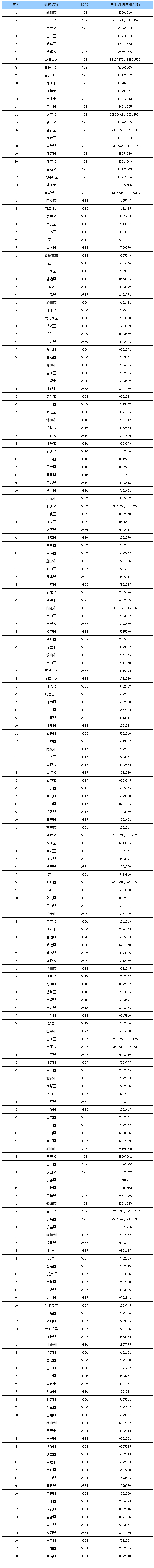 为便于我省2023年普通高考考生咨询、了解报名所在地备考要求,现将四川省各级招生考试机构联系电话公布如下: