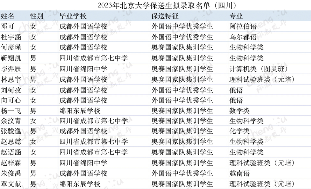 2023年保送生拟录取名单
