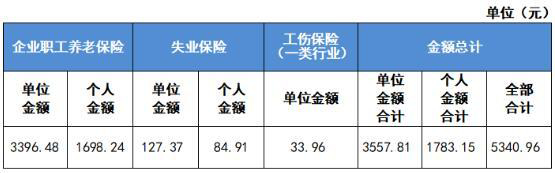 五、单位职工申报工资高于缴费基数上限标准的各项社会保险费月缴费金额