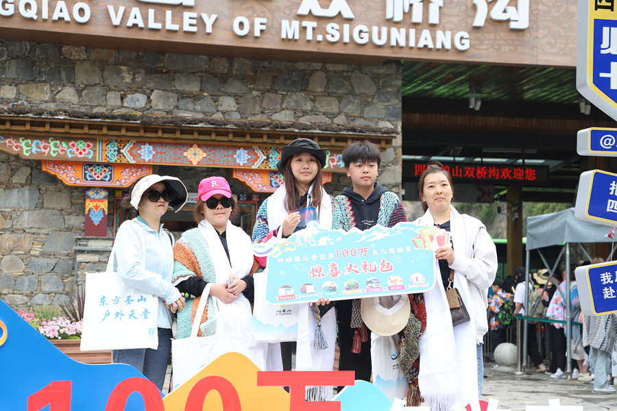 四姑娘山景区管理局为今年第100万名游客送上大礼包。王鑫 摄
