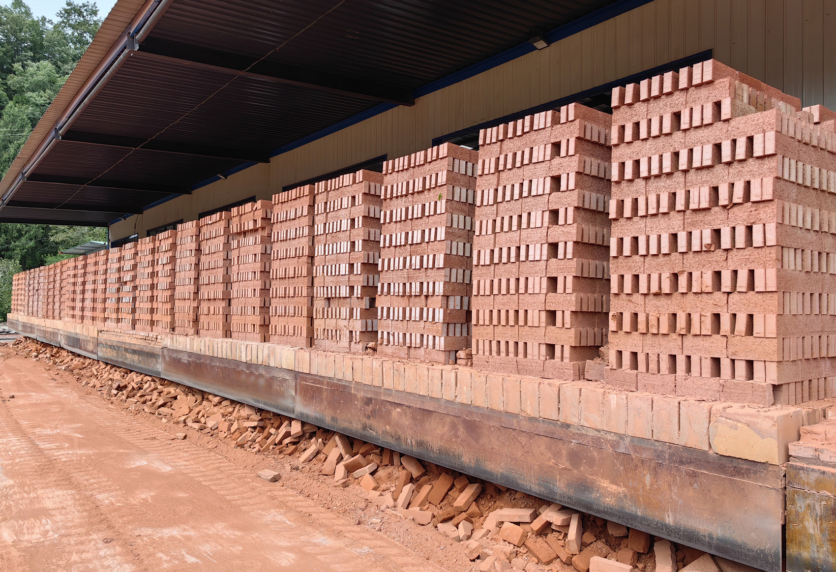 8月27日,在巴中市南江县大综固废新型建材生产基地,一排排红色标砖码放整齐,一旁等待转运的货车司机李石奎告诉记者,这是今天拉的第二趟砖,平均每天要拉一趟,最多的时候一天要来回拉四趟。