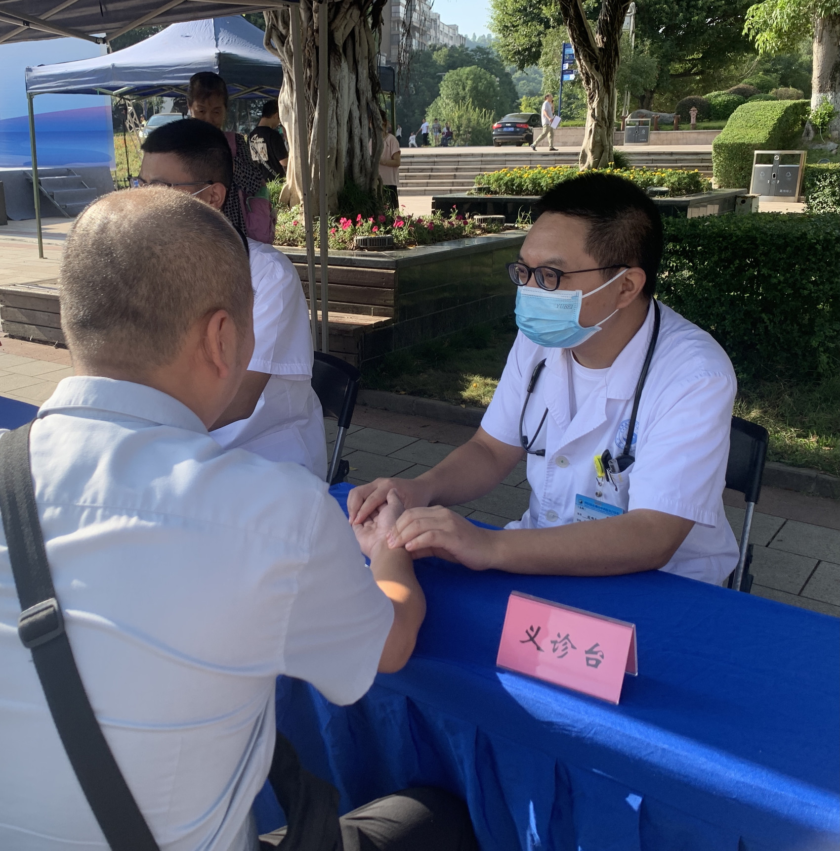 与此同时,现场还搭设了义诊区域,为前来咨询的市民进行量血压以及中医把脉问诊。
