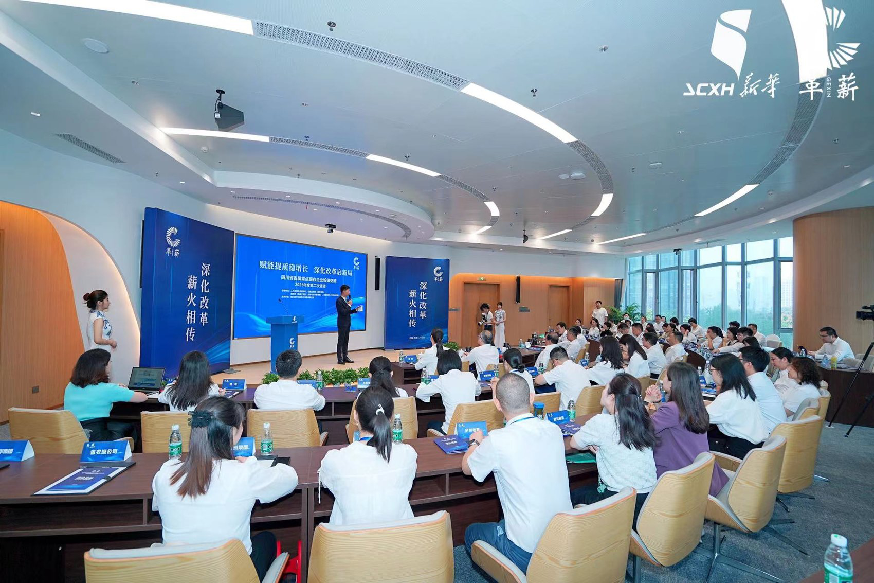 9月22日,四川省省属重点国有企业轮值交流2023年度第二次活动在成都举行,本轮活动由省委宣传部(省文资办)、财政厅(科教文卫处、金融与资本管理处)、人力资源和社会保障厅、省国资委(考核分配处)指导,四川新华出版发行集团有限公司主办,其间正式发布了“革薪”轮值交流品牌。