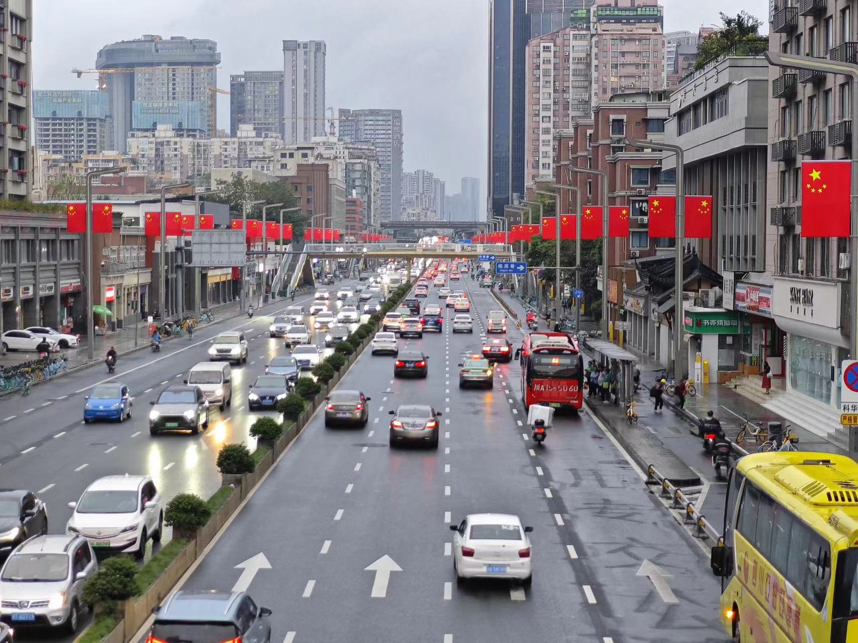 目前,成都市城管委组织中心城区陆续在天府广场、人民南路、天府大道、蜀都大道东西段、成华大道、金牛大道、迎宾大道等100余条重要路段、区域以及城市交通要道、交通枢纽、旅游景点周边道路灯杆上悬挂国旗。同时,其他区(市)县根据辖区内实际情况自行安排悬挂路段和规模,预计“5+2”中心城区悬挂国旗2.4万余面,全市悬挂国旗8.2万余面。