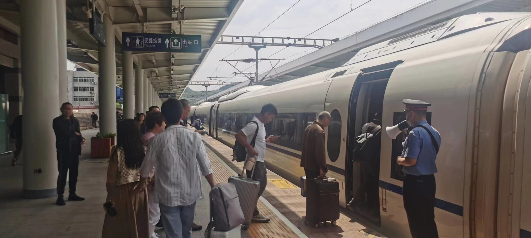 广元火车站首开夜间动车,旅客凌晨也能赶动车。图为9月26日广元火车站旅客搭乘动车。广元车务段 供图