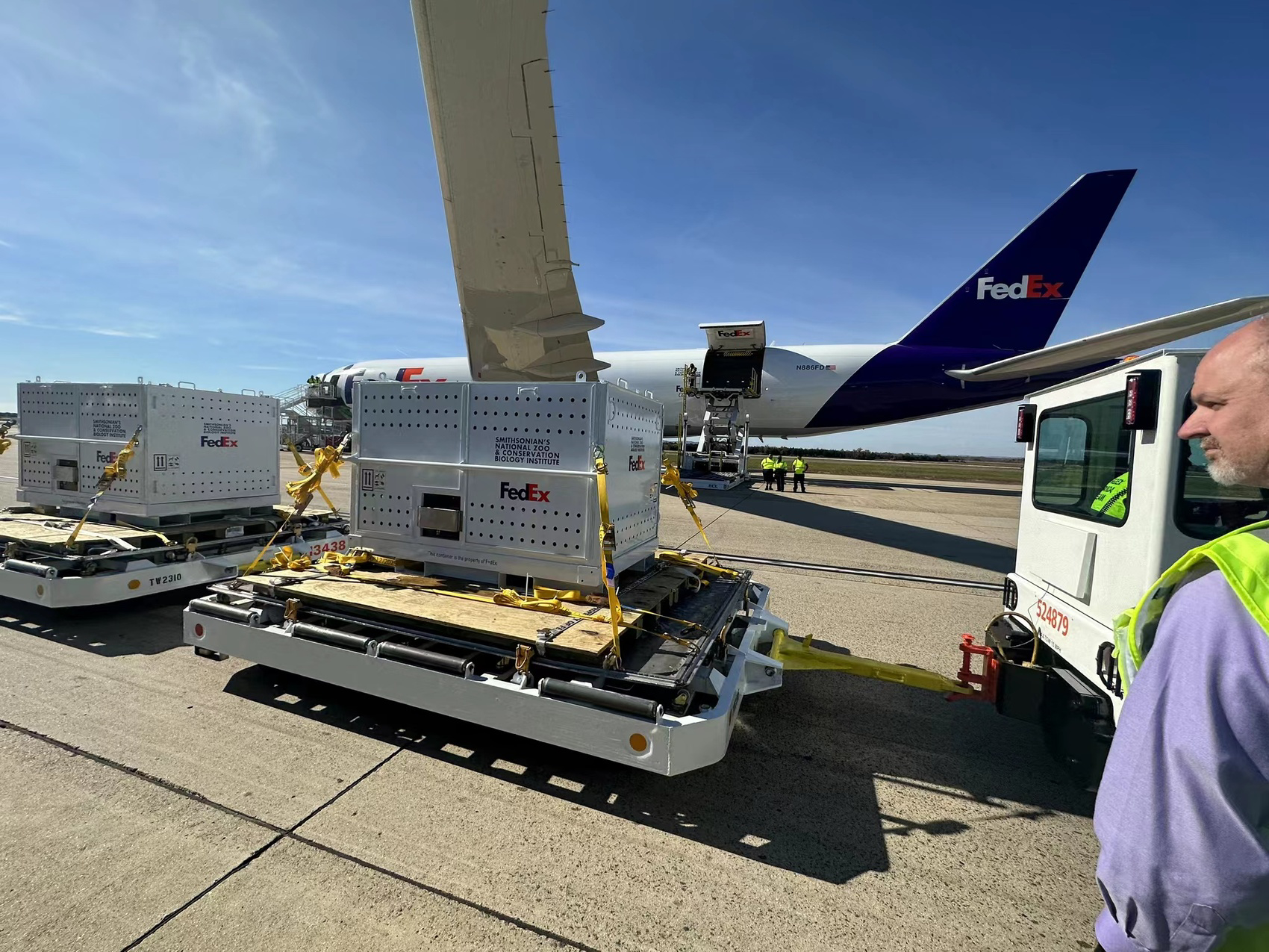 装有“美香”一家的大熊猫笼舍和“FedEx熊猫快递号”777货机。图据美国国家动物园