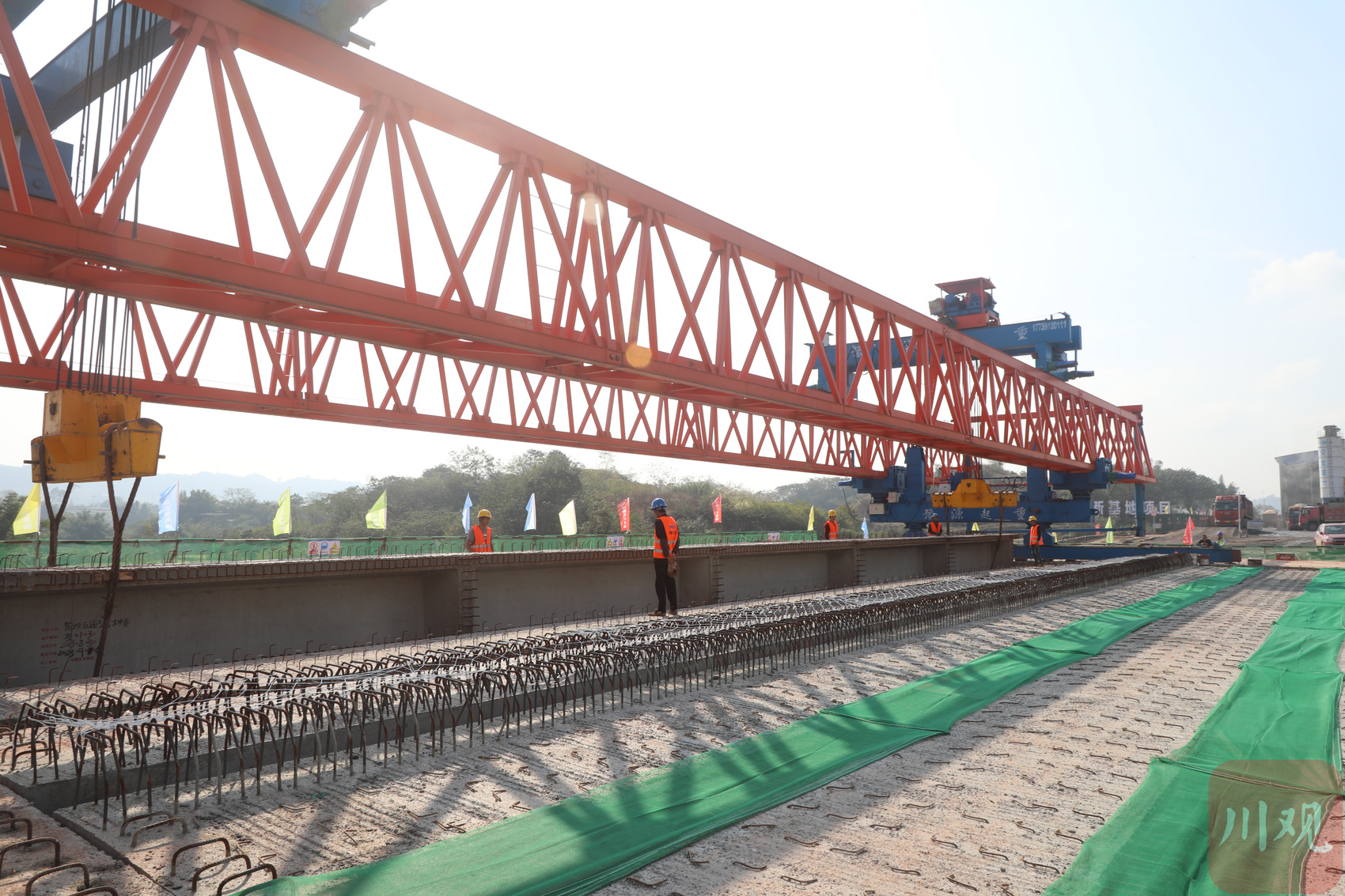 徐孝海表示,项目2021年开工以来,克服了地势险恶、雨季时间长等不利影响,攻克了桥梁空心薄壁墩、现浇箱梁、地质复杂段桩基等施工技术难题。“目前,桥梁工程完成工程量的95%,主要进行桥面铺装和防撞护栏施工;路面工程完成工程量的80%,主要进行沥青面层摊铺;隔离带绿化及交通安全设施完成70%。”