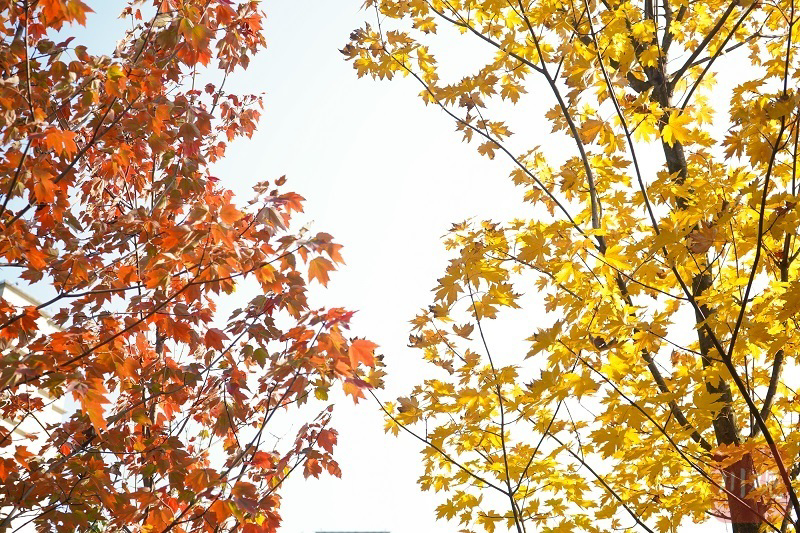 走进流杯池公园,放眼望去,层林尽染,一片片暗金色、橘黄色、红褐色的枫叶,宛如大自然打翻的调色盘,疏密有致地装点着这方天地,美不胜收。在阳光的照耀下,枫叶显得更加温暖,火热耀眼的枫叶与湛蓝干净的天空碰撞出了独属于宜宾的浪漫。