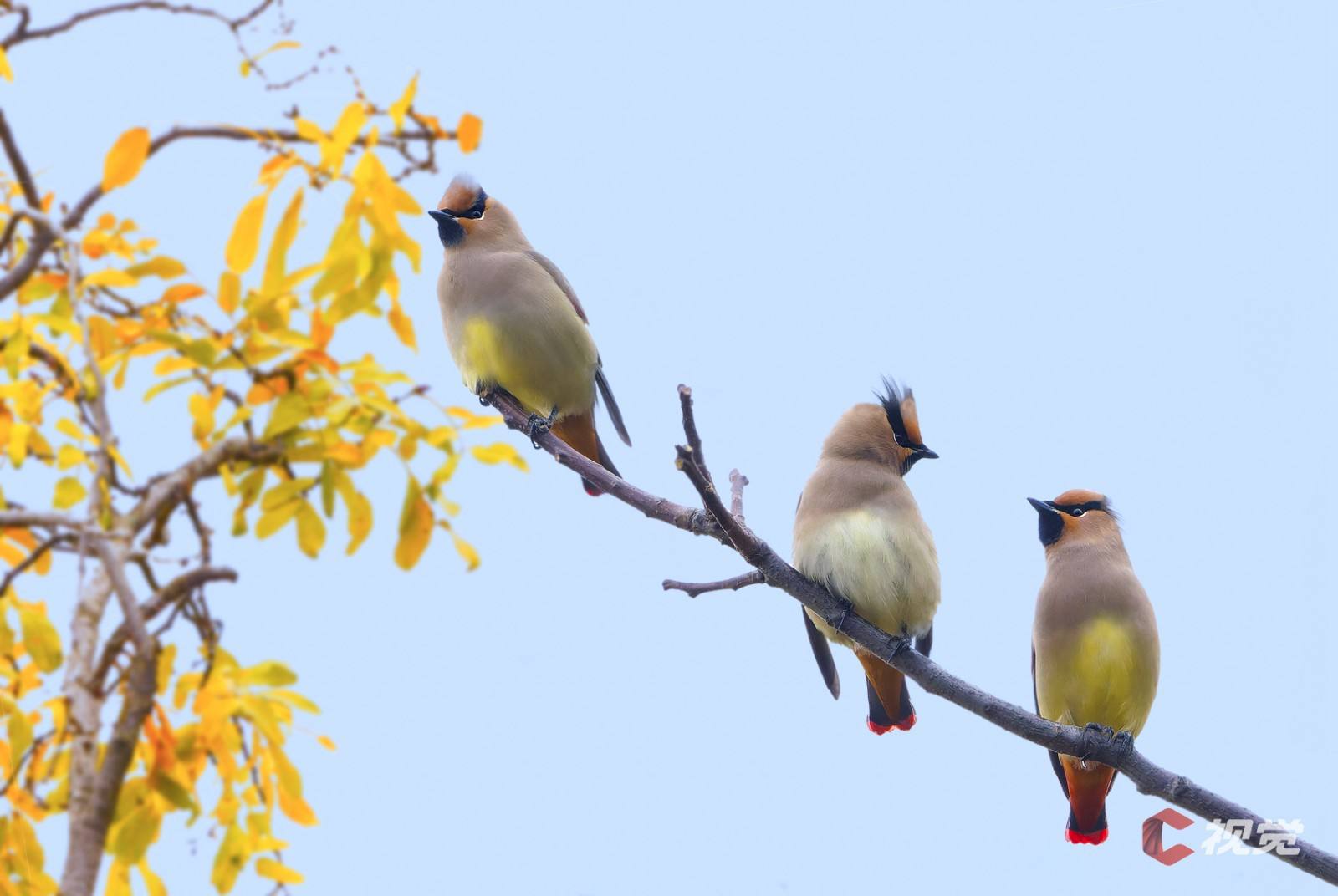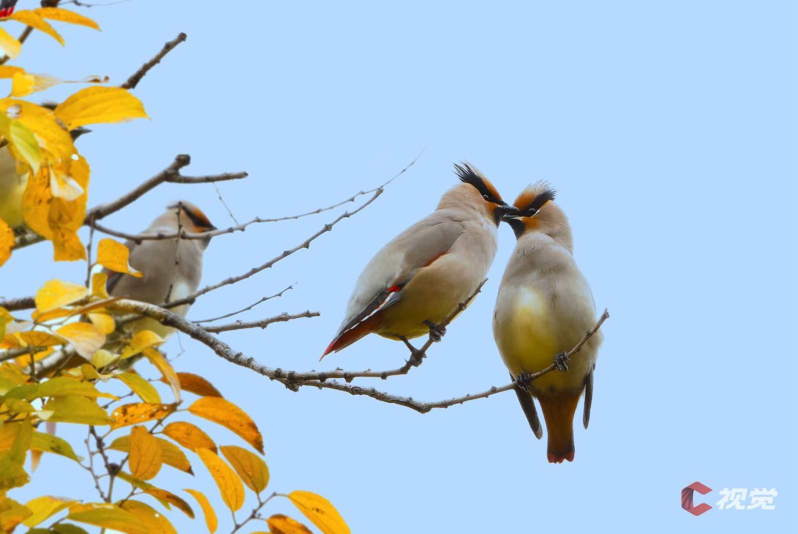 C视觉摄影师吴亚非于12月初在成都凤凰山拍摄到罕见大批量越冬太平鸟。