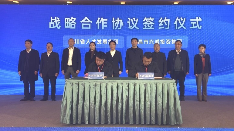 活动上,四川省人才发展集团有限责任公司与隆昌市兴诚投资集团有限公司签署合作协议,双方将以隆昌人才发展集团为主体,共建人才库、共享人才流通渠道、合办各类培训及人才活动,同时针对隆昌地方产业特征,共同探索商业发展新模式。