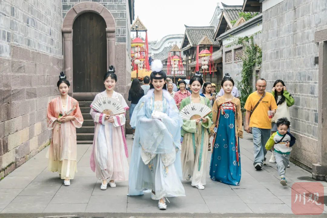 承千年文化,赏汉服之美。汉服小姐姐们也会身着华丽霓裳在月亮田和老古镇景区巡游,给游客们带来一场穿越古今的视觉盛宴。