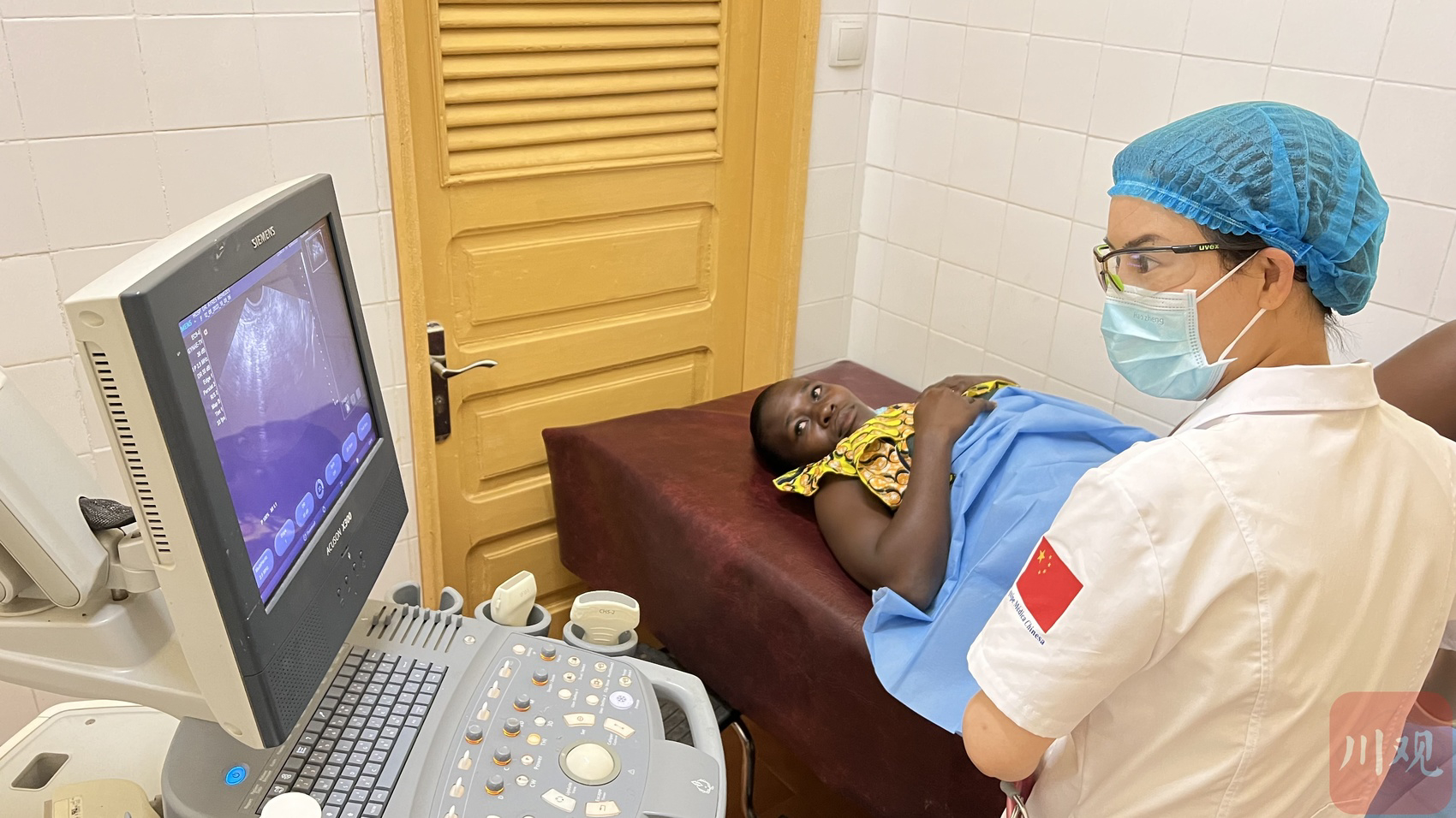 2023年5月15日,中国医疗队妇产科医生罗星雨,在圣普开展第一台不孕妇女超声晶氧诊疗,填补当地不孕不育治疗空白。