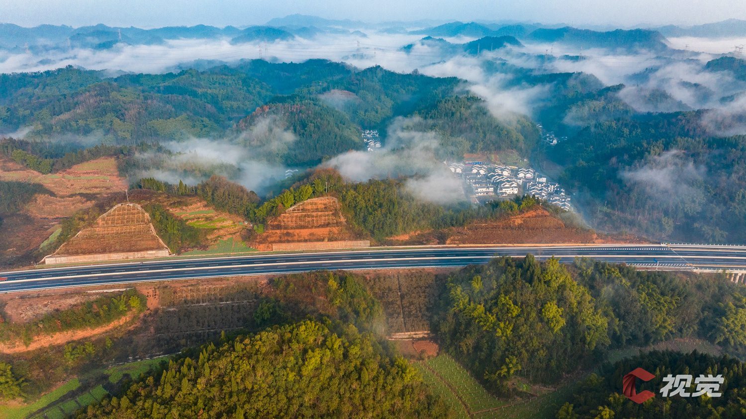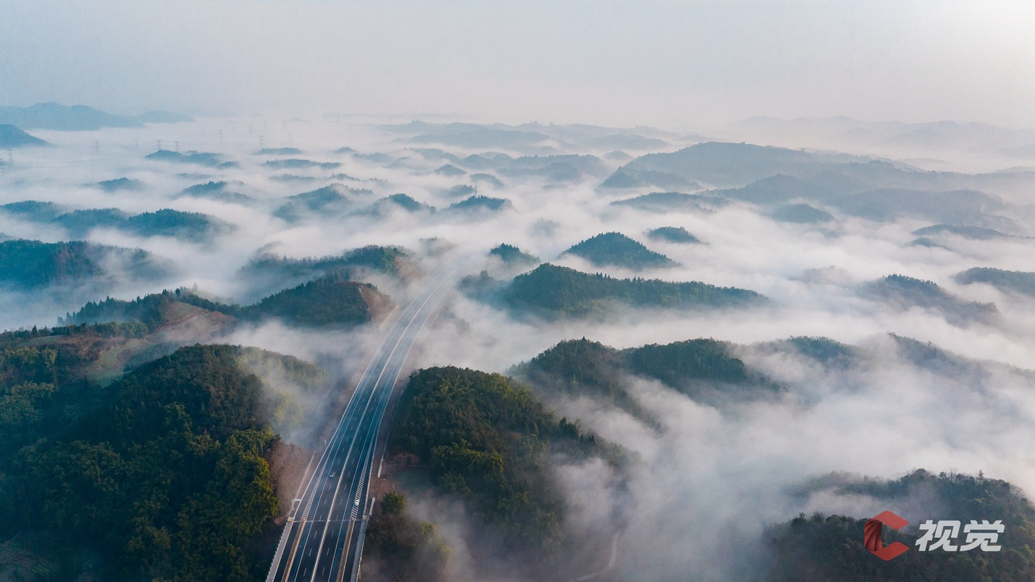 1月9日清晨,成都市大邑县北二环云雾缭绕,周围层峦叠嶂,山峰在云雾中时隐时现,绵延不绝,北二环犹如一条巨龙穿梭其中,美不胜收。