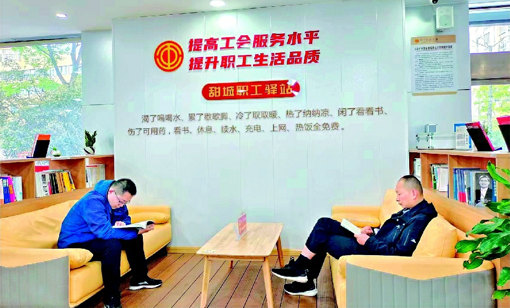 近年来,内江市总工会聚焦广大户外劳动者和新就业形态劳动者“吃饭难、喝水难、休息难、如厕难”等现实问题,以“三建、四管、五心、七送”模式,创新推进以“甜城职工驿站”为地方品牌的工会驿站建设。目前,已累计筹集各类资金560余万元,建成“甜城职工驿站”305个,在主城区基本搭建起“15分钟”服务圈,服务户外劳动者及新就业形态劳动者等职工群众59万余人次。