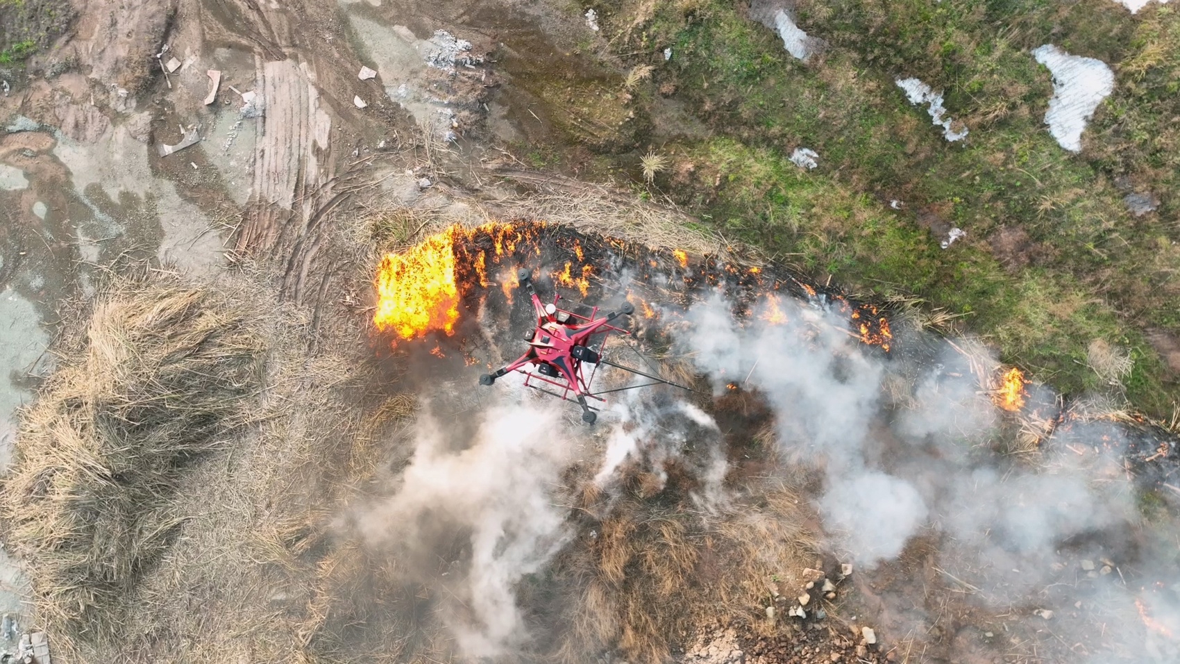 无人机近距离精准灭火。