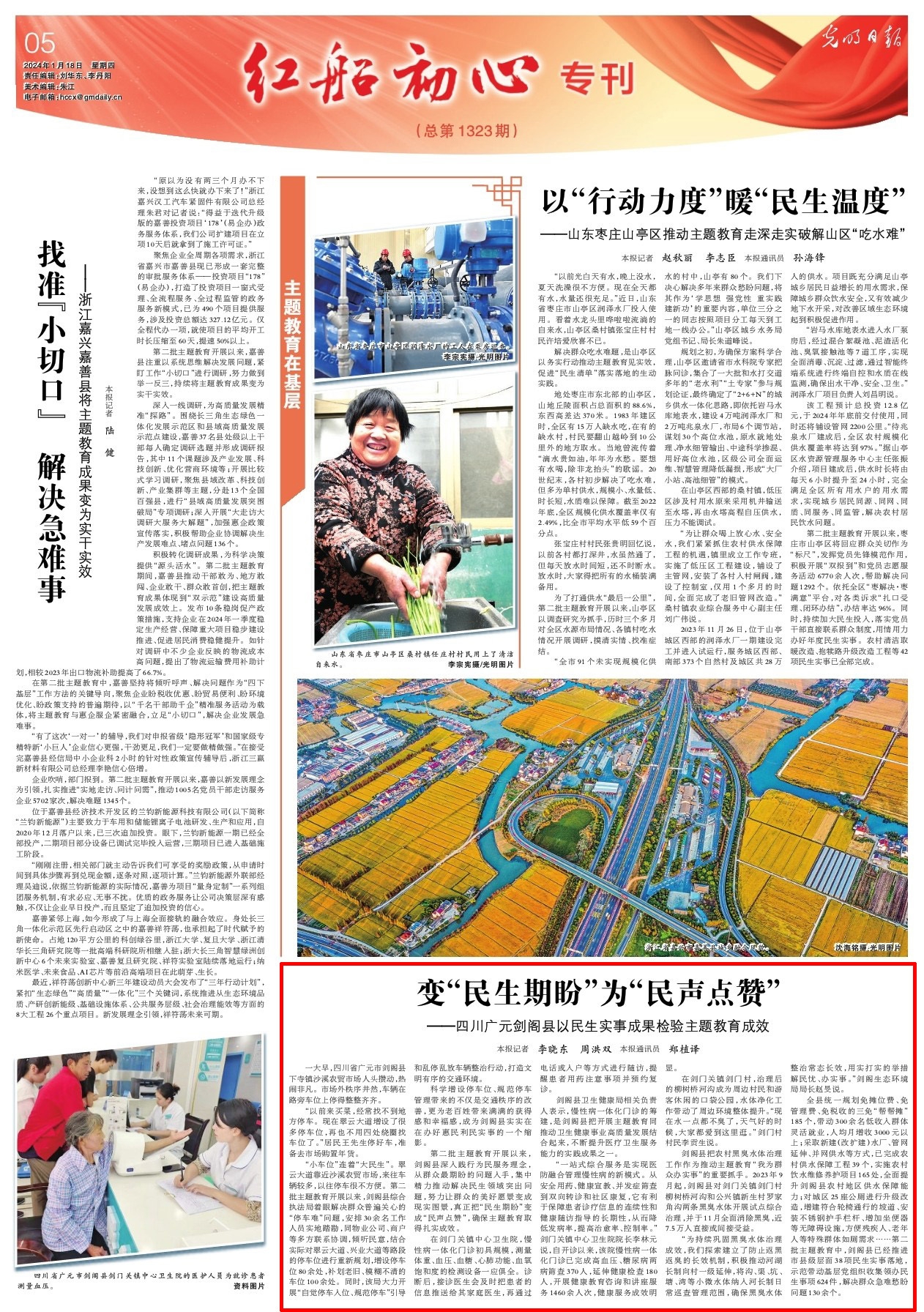 第二批主题教育开展以来,剑阁县深入践行为民服务理念,从群众最期盼的问题入手,集中精力推动解决民生领域突出问题,努力让群众的美好愿景变成现实图景,真正把“民生期盼”变成“民声点赞”,确保主题教育取得扎实成效。