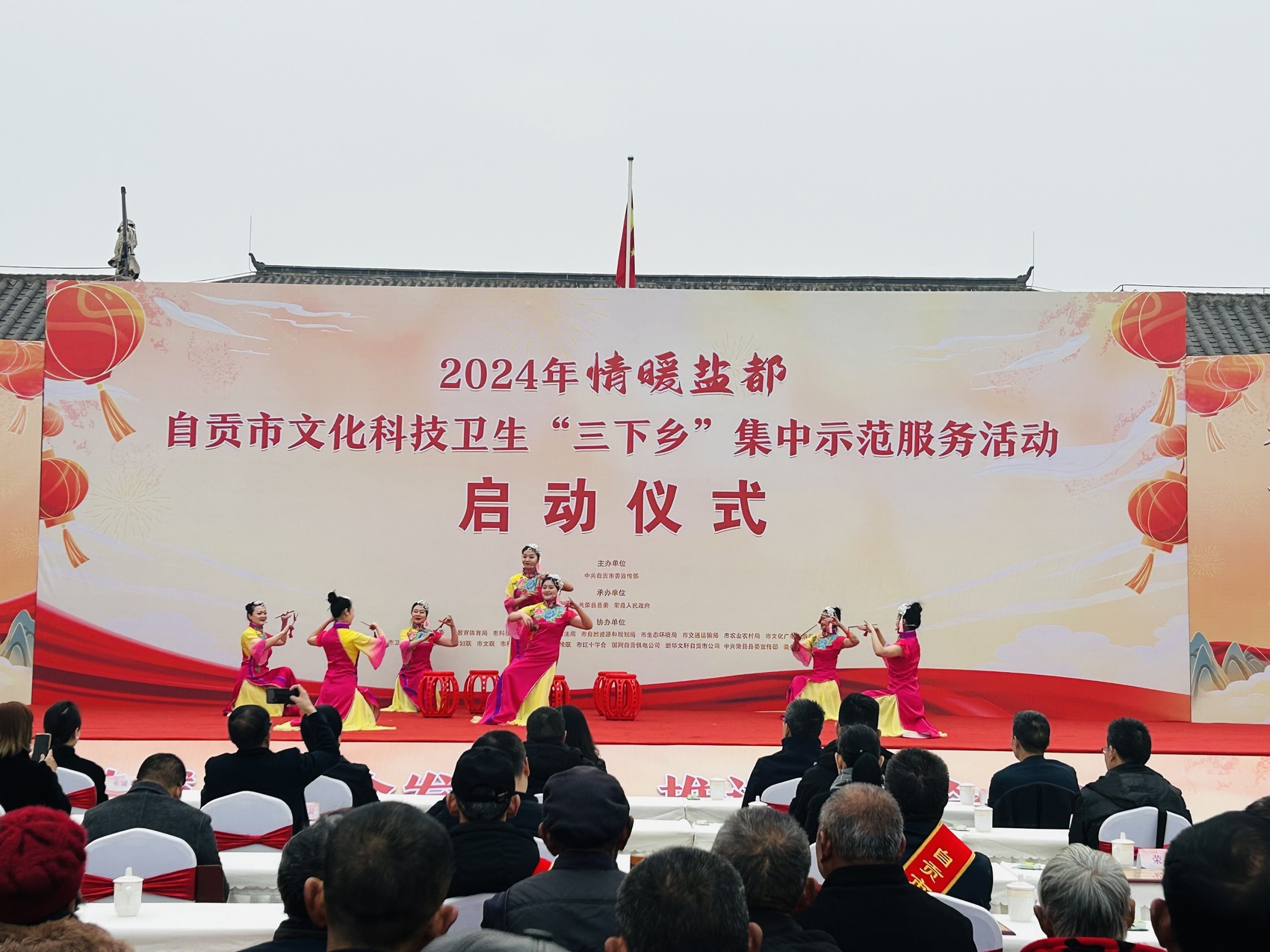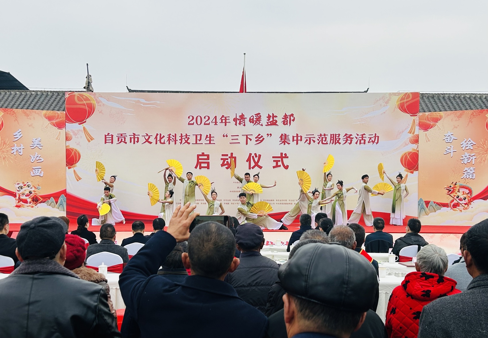 把舞台搭到农村、把科技送到田间、把健康送进家门……1月18日,2024年自贡市文化科技卫生“三下乡”集中示范服务活动在荣县蔬菜之乡鼎新镇老当村正式启动,通过开展文化下乡巡演、科技科普培训、医疗卫生服务、法治宣传普及等活动,给群众送来新春的祝福和实实在在的贴心服务。
