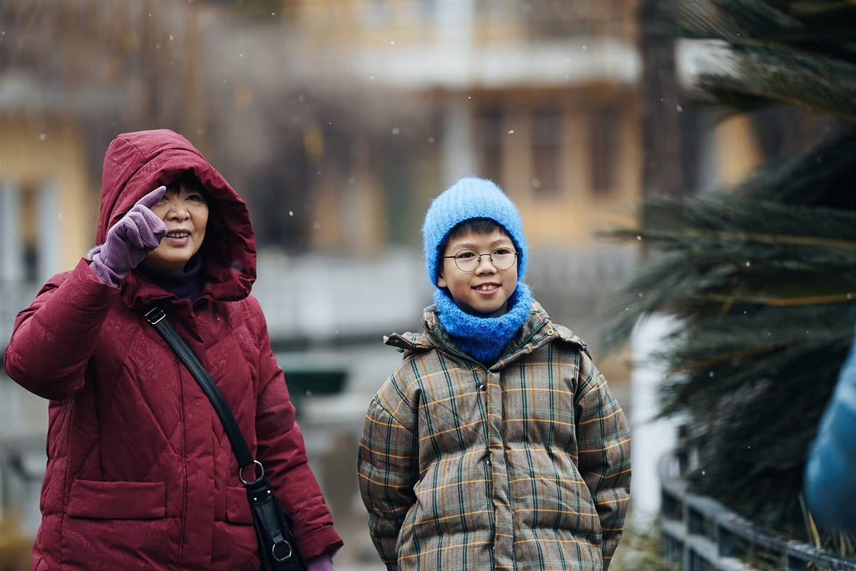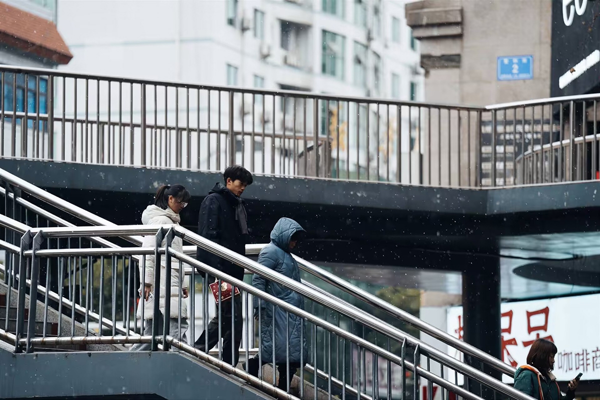 市民正在一边散步一边感受绵阳的初雪