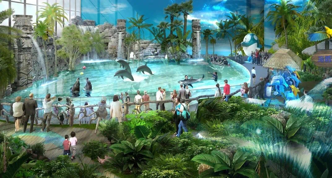 在这颗“大海螺”的内部,将打造热带雨林馆、珊瑚礁鱼馆、凶猛鲨鱼馆、极地动物馆、梦幻水母馆等八大展馆,海豚海狮欢乐剧场、白鲸欢乐剧场、美人鱼剧场三大沉浸式欢乐剧场,以及集亲子游体验互动、研学拓展、动物救护保护等功能于一体的人文主题旅游目的地。