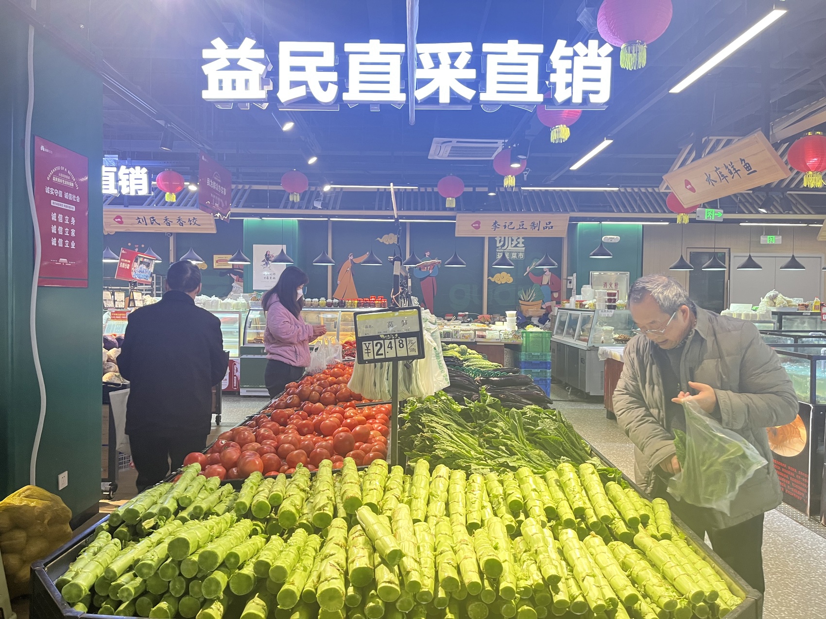 记者在益民菜市长顺街店看到,市场内蔬菜摊点上摆满了堆码整齐的蔬菜,肉类区密密麻麻地悬挂着香肠腊肉,整个市场满是年味与烟火气息。记者从益民菜市相关负责人处获悉,作为重点保供企业,益民菜市多措并举全力保障雨雪天气米、面、油、肉、蛋、菜、奶、果等重要生活必需品市场供应。目前,益民菜市各门店运行平稳有序,供应充足。