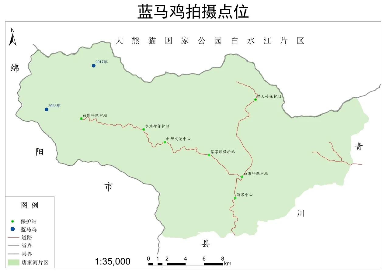 据悉,该片区上次记录到蓝马鸡活动画面,是在2017年5月24日,拍摄地位于骆驼岭区域,海拔2581米。此次拍摄地位于白熊坪区域,海拔2464米。