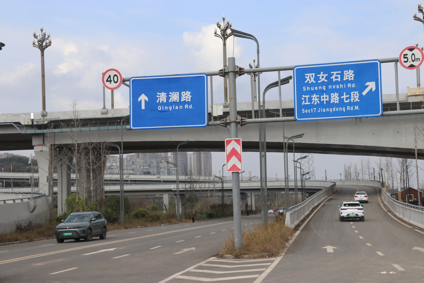 据了解,将军路大桥顺庆段设互通式立交桥与双女石路、清泉坝片区相连接,现在车辆通过将军大桥互通式立交桥快捷到达清泉坝片区、双女石路(双女石公园)、滨江北路、滨江中路、石油东路,两大主城区路网进一步畅通,方便市民的出行。