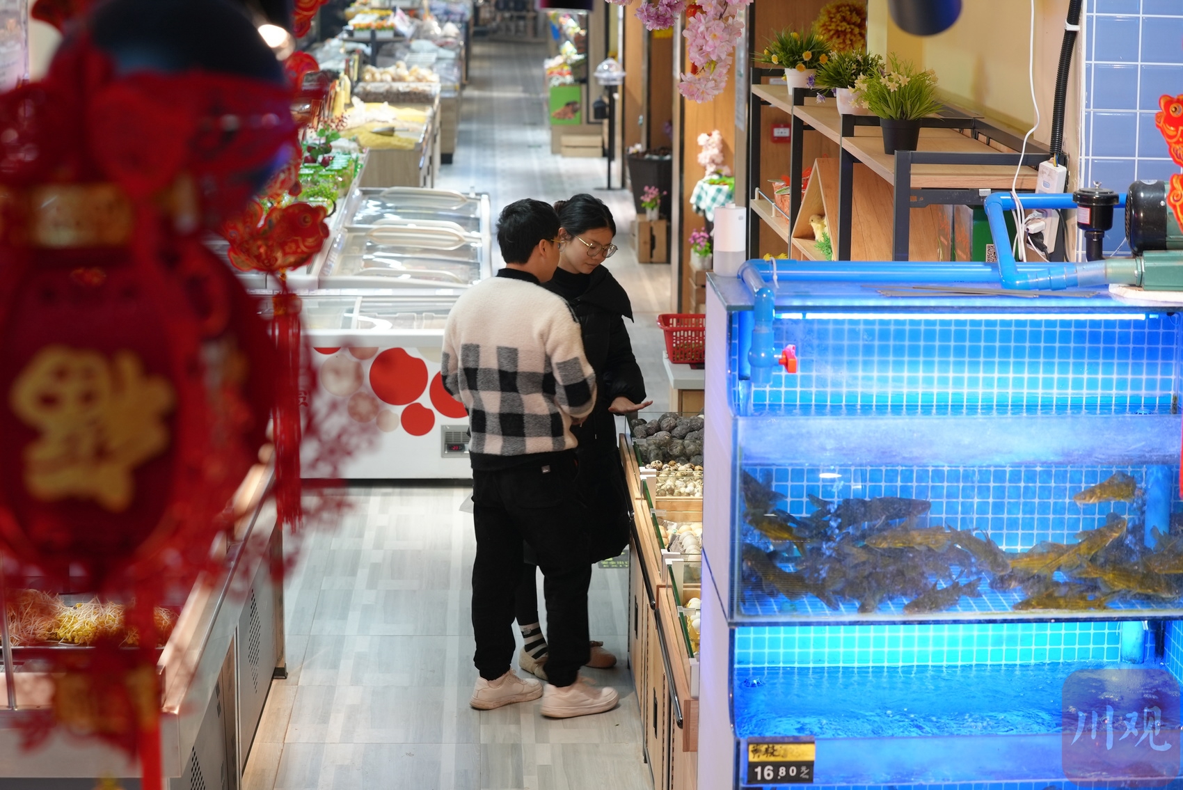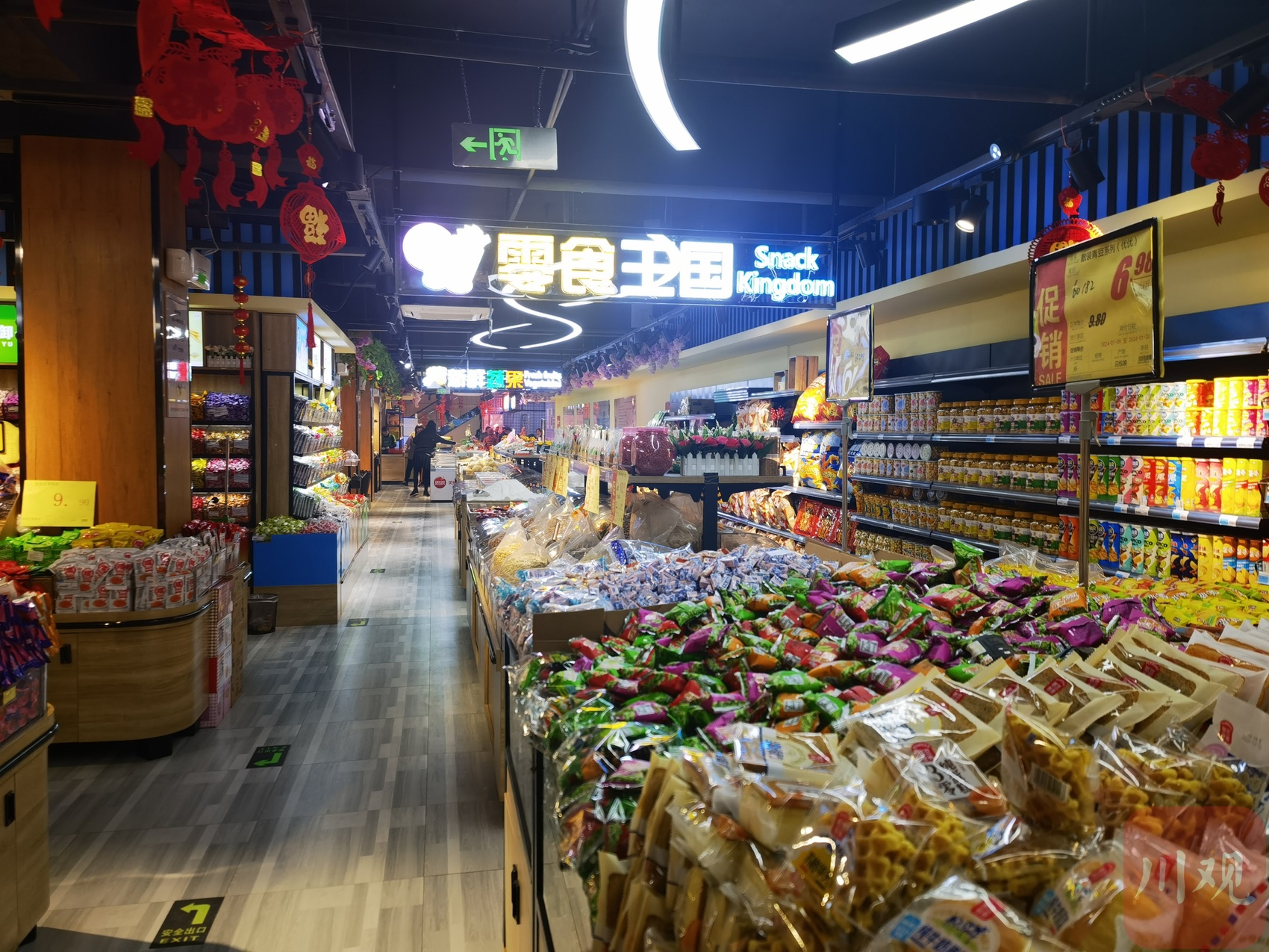 在一个常住人口只有1.7万的川南普通乡镇上,一家日用百货超市会是什么样?1月20日,记者在丰乐镇镇中心的兴隆街上走访时看到,门面仅有5米宽的“赵先生的润家超市”,内部场景却让人大感意外:两层楼、2000平方米、30000个单品,生鲜、熟食、百货、预包装商品一应俱全,甚至就连时下年轻人流行的“鸭屎香奶茶”“面包脆”“北欧金汤匙”等网红商品也铺满货架。