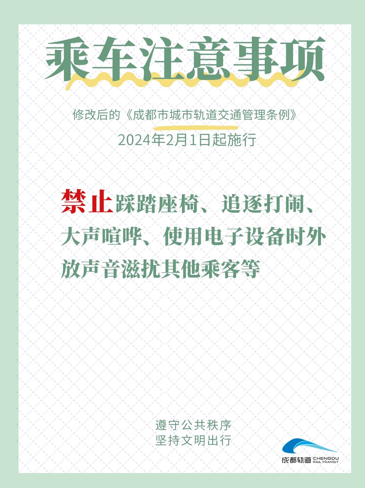 1月31日,川观新闻记者从成都轨道集团获悉,2月1日(明日)起修改后的《成都市城市轨道交通管理条例》将开始实施。
