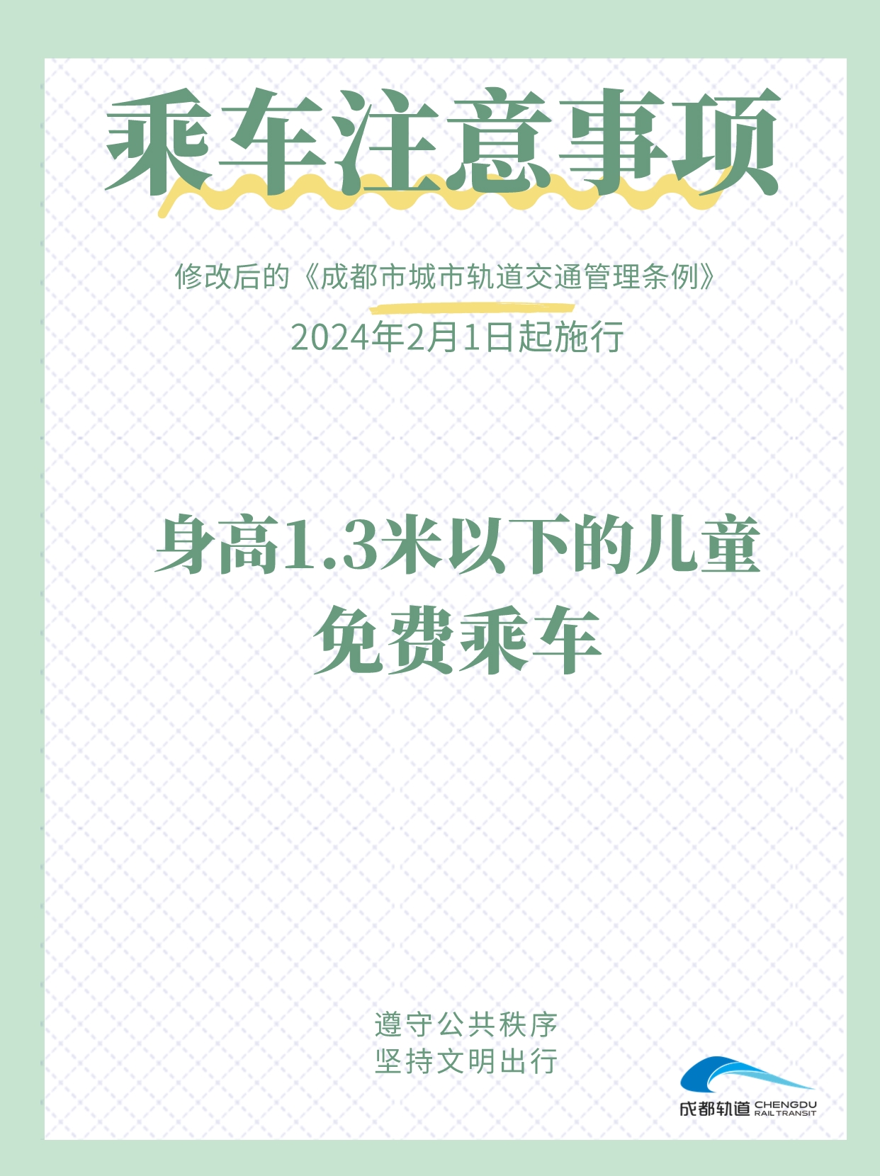除了这些明令禁止的行为以外,对于儿童免票乘车的问题在此次也做了修正,明确身高1.3米以下的儿童免费乘车。