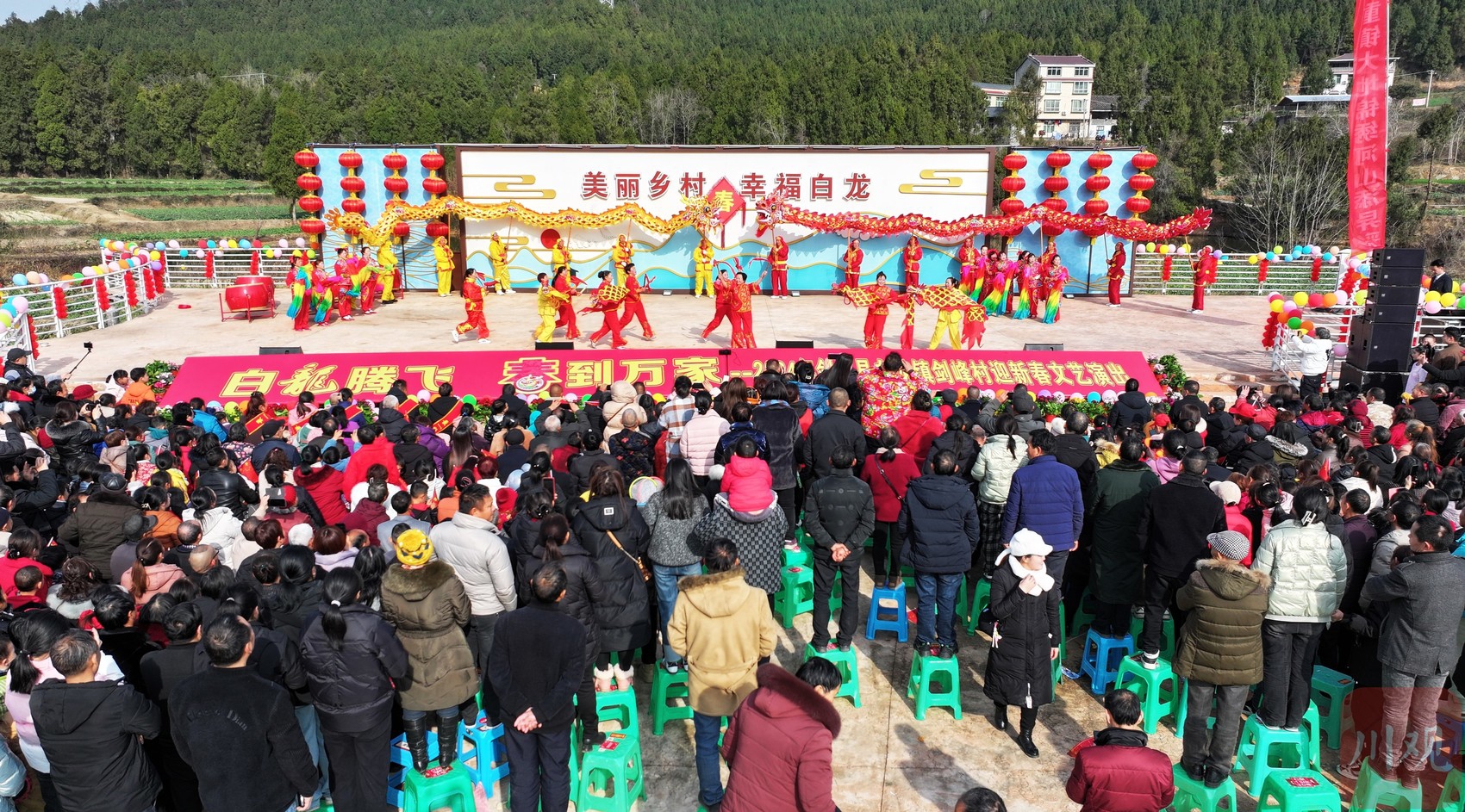 2月4日,腊月廿五,立春,主题为“白龙腾飞 春到万家”的喜迎新春文化活动非遗“村”晚在剑阁县白龙镇剑锋村举行,表现形式多样、演出神奇缥缈的非遗“白龙花灯”让人美不胜收。