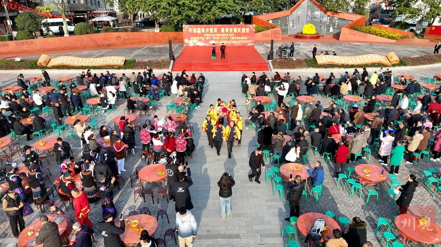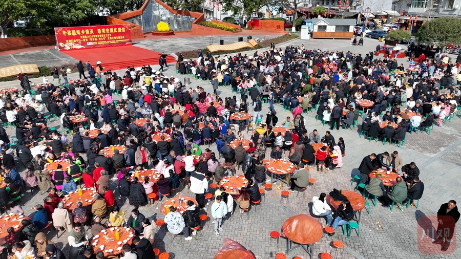 12时许,年猪宴正式开始。长长的条盘盛满了用年猪肉做出的粉蒸排骨、回锅肉、咸烧白、猪血汤等各种地道美食,浓浓的年味也随着美味弥漫开来。