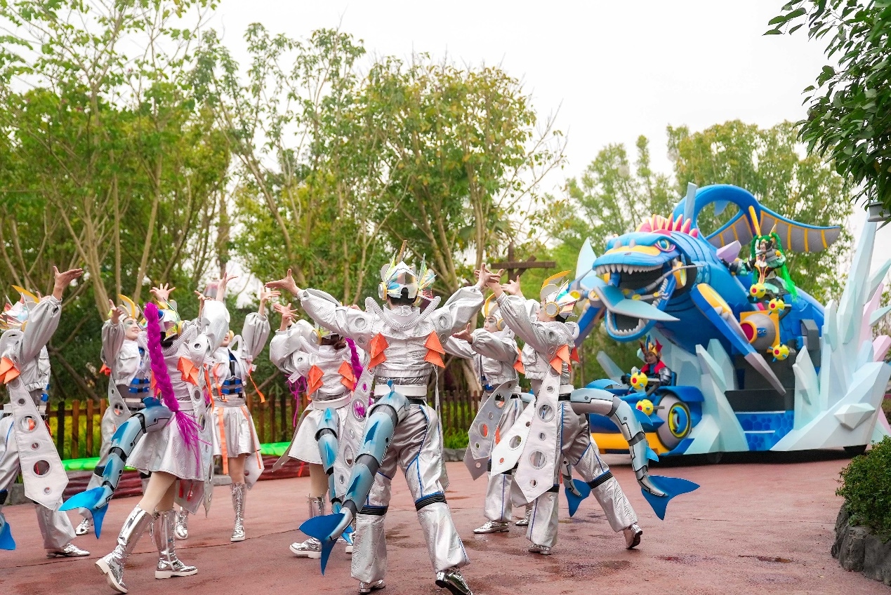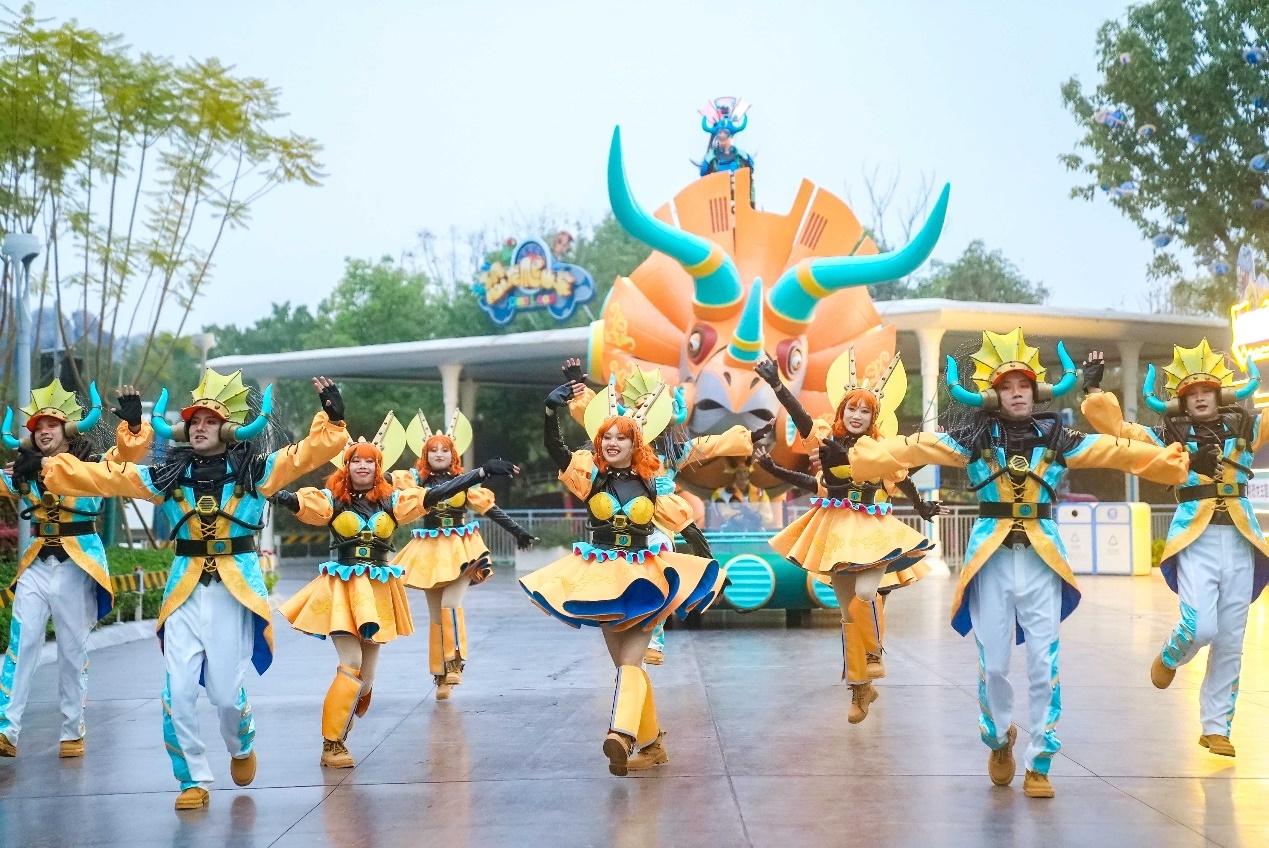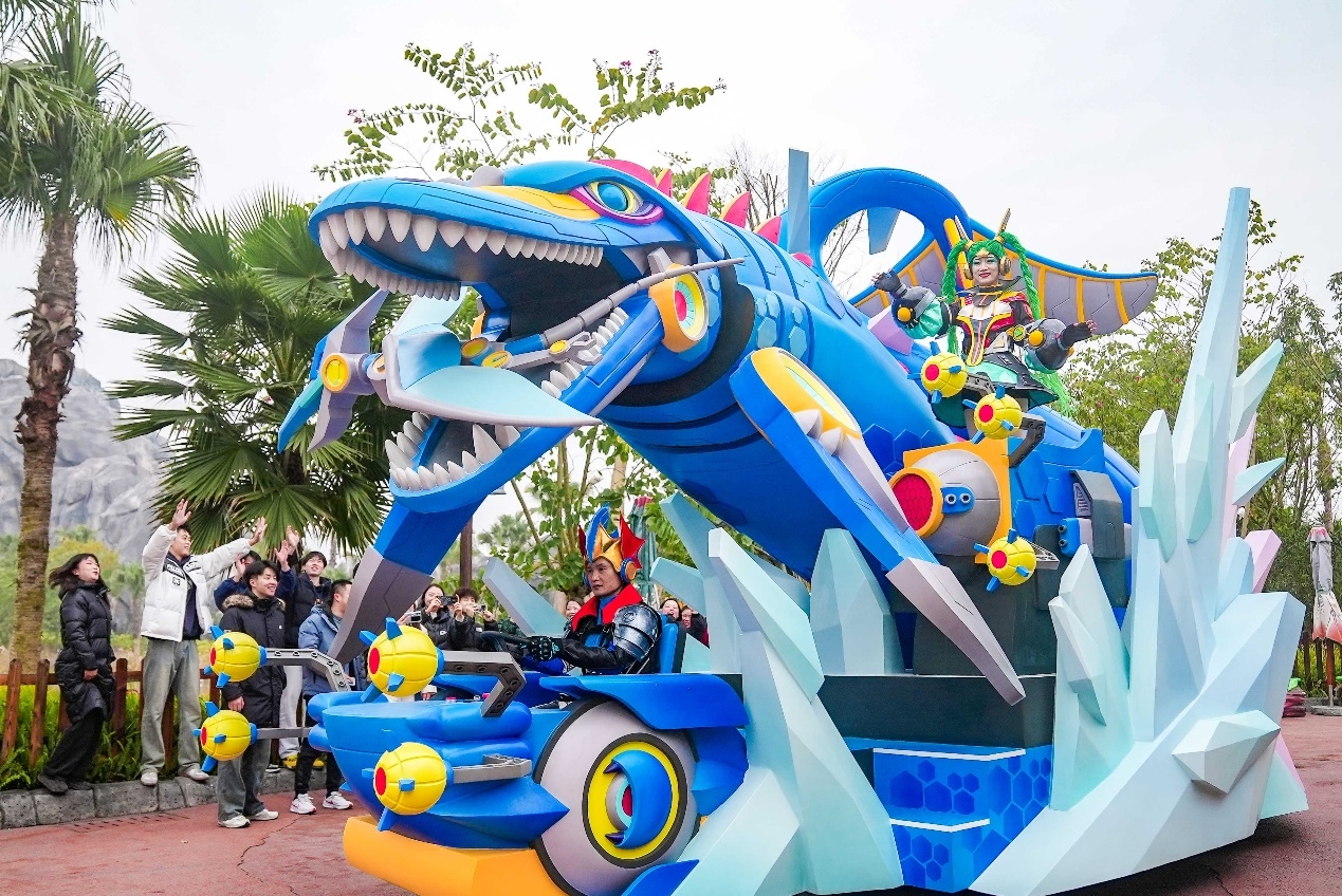 2月3日,自贡方特为迎接即将到来的龙年春节,震撼上新三大机甲恐龙花车。恐龙花车首次亮相,花车主题方阵和数百名NPC组成全新的赛博恐龙大巡游。三大机甲恐龙震撼出场,歌舞表演、零距离强互动,点燃现场游客的热情。