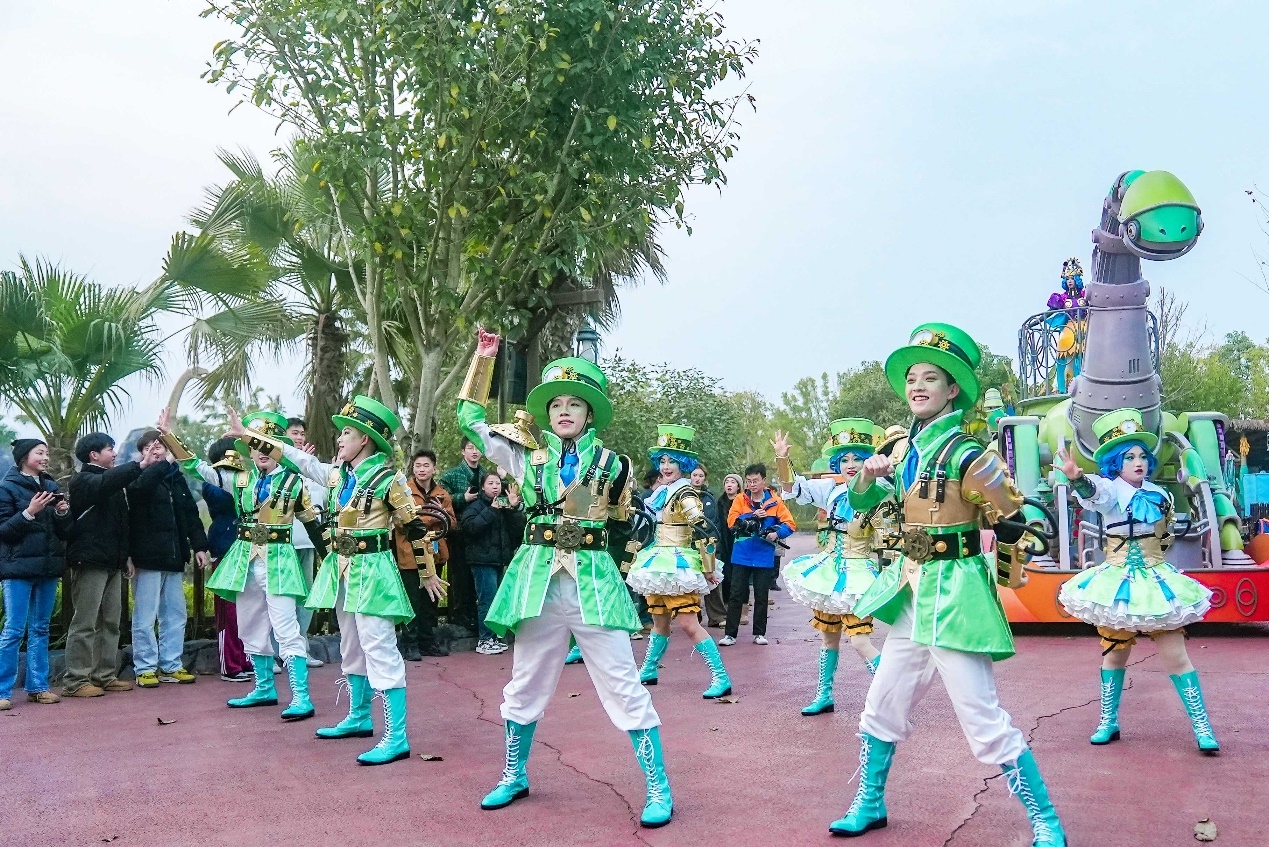 届时,除了赛博恐龙大巡游,还有浪漫飞雪、NPC天团、限定互动演出、无人机和新年烟花秀震撼来袭,并将每日欢乐体验时光延长至12小时,与广大游客一起欢欢喜喜过新年。
