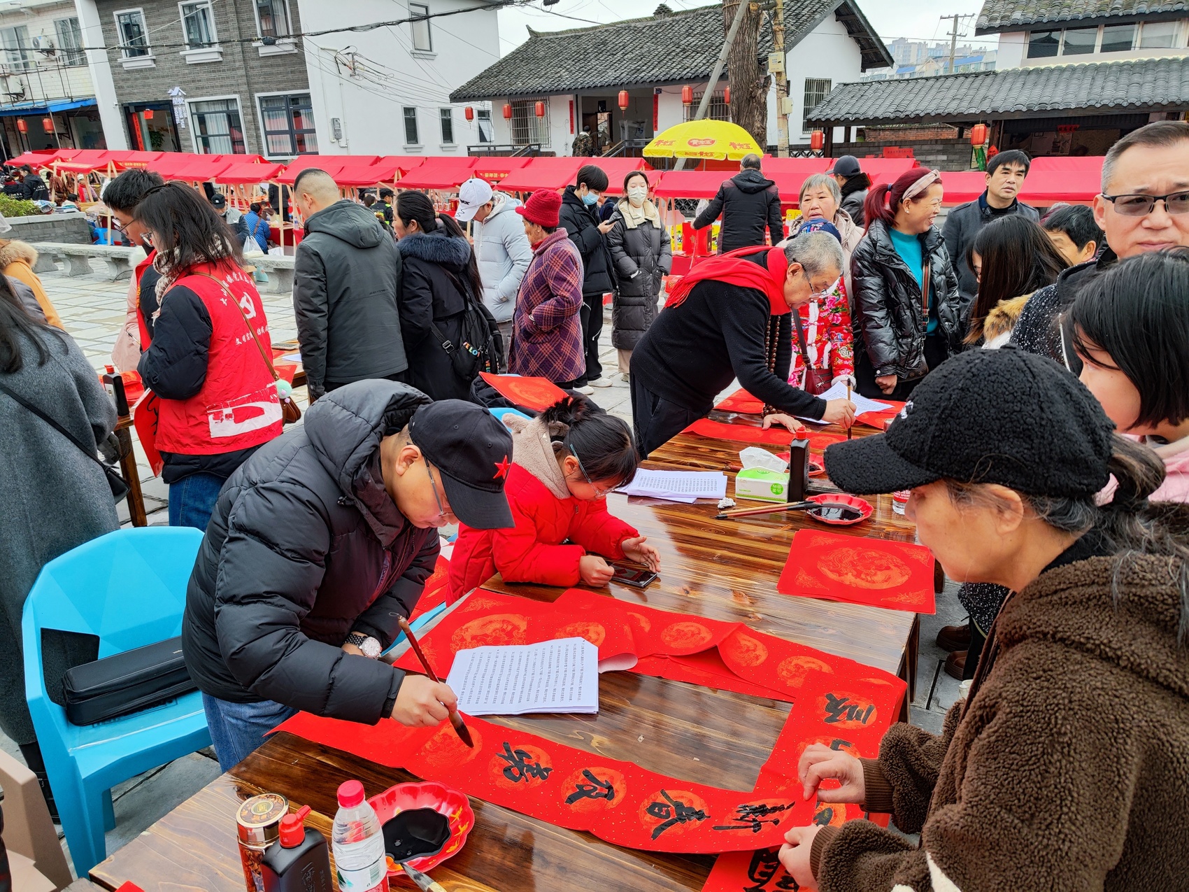 在市区主会场,活动启动仪式还没开始,就聚集了上百名等待领取春联和福字的市民。现场书写活动开始后,10多名书法家面前都排起等待领取春联和福字的队伍。“老师请帮我写这副!”“老师我家孩子都在外地,我想要一副家人平安的春联!”书法家们一一根据市民的要求书写春联和福字。