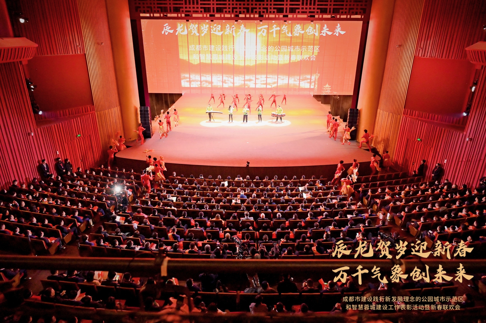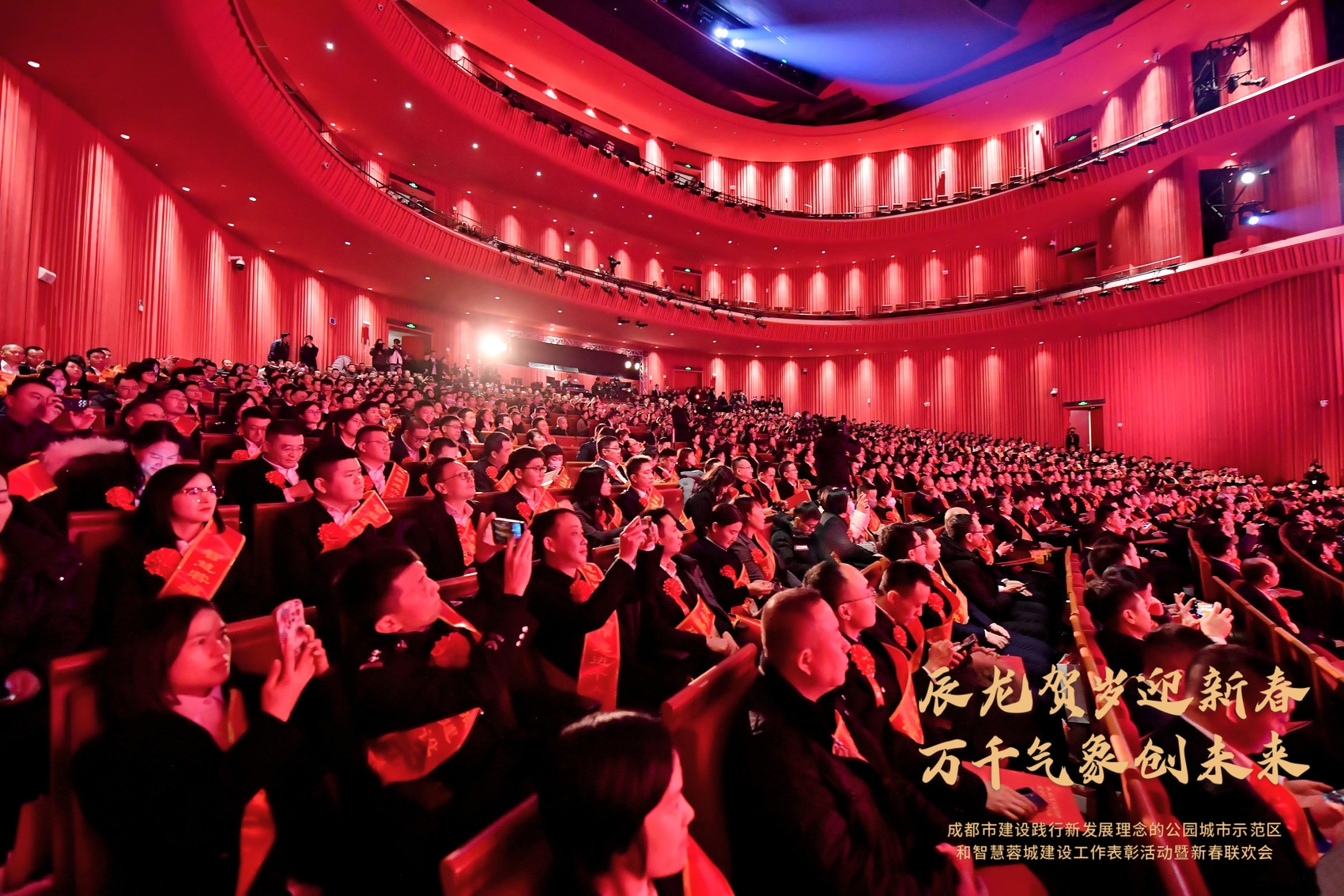 2月6日晚,成都城市音乐厅气氛热烈——成都市建设践行新发展理念的公园城市示范区和智慧蓉城建设工作表彰活动暨新春联欢会在这里举行,近千名获奖代表和市民代表齐聚一堂,表彰先进、积聚力量,以饱满热情迎接新的一年。