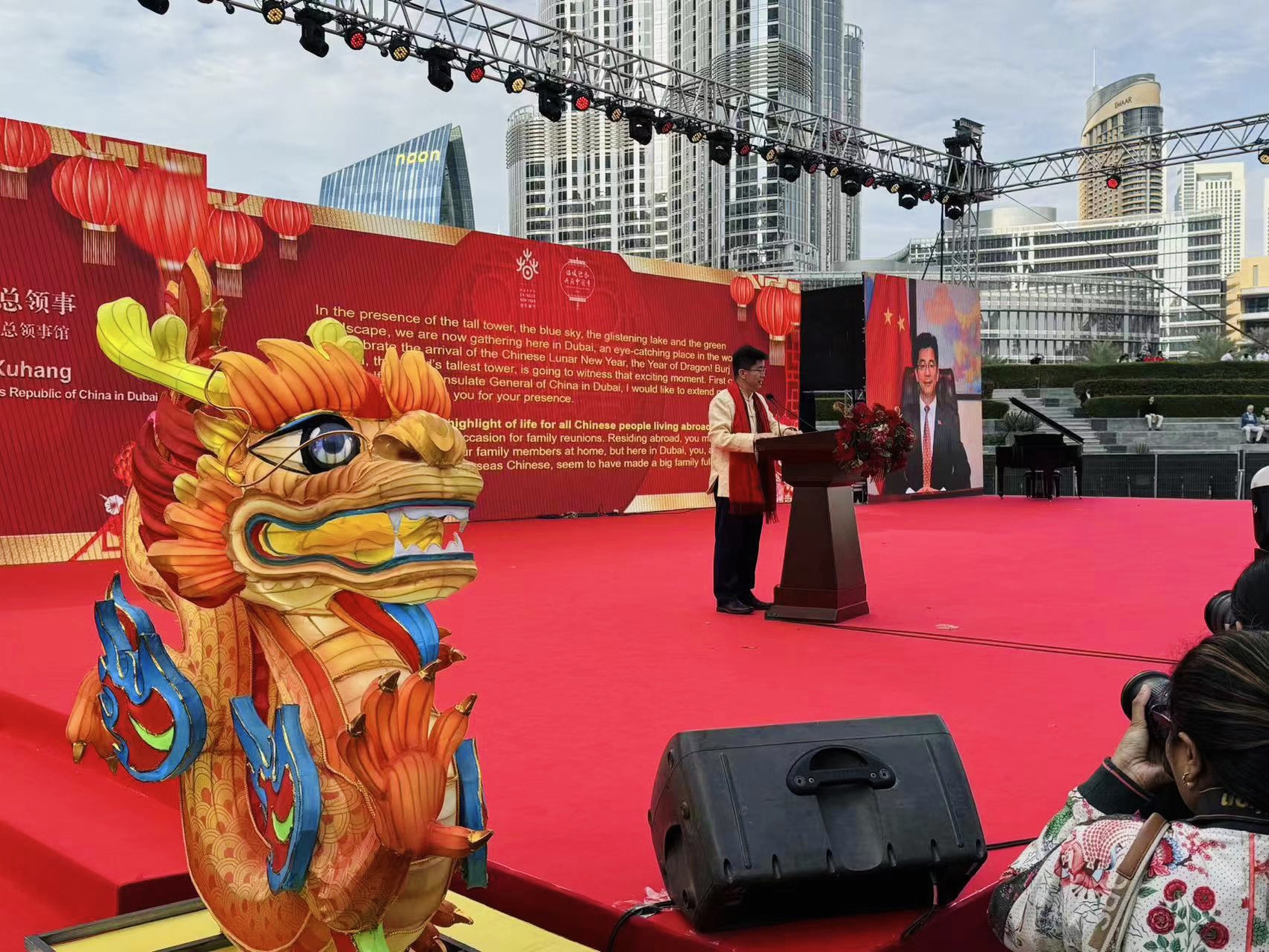 两条形象可爱的中国龙微张着龙爪,好似在给游客打招呼;龙身发出黄色的柔光,两侧有两团红蓝相间的火焰,代表着祥瑞……2月3日,2024年迪拜“欢乐春节”大巡游活动正式开幕。其中,两个造型生动的龙型彩灯灯组吸引了众多外国友人,成为本次龙年大巡游的视觉标志。