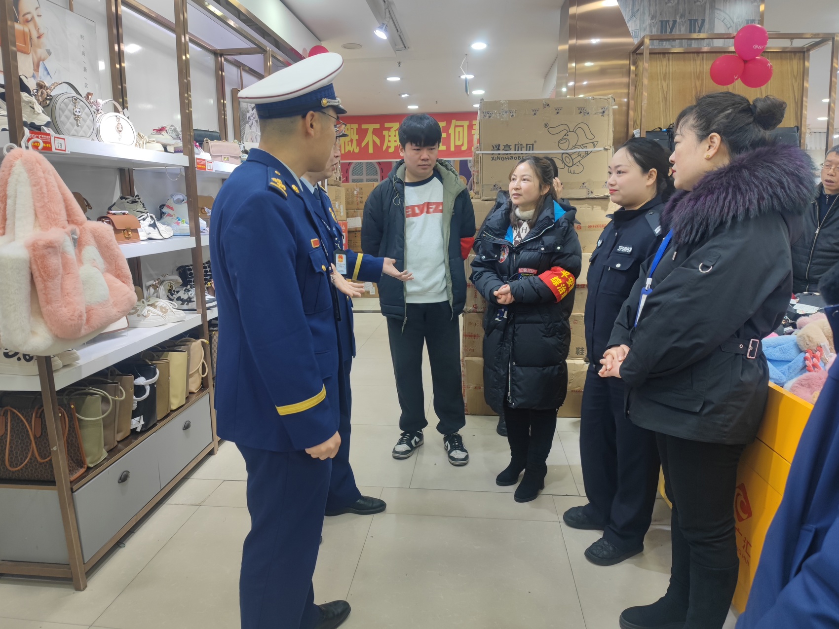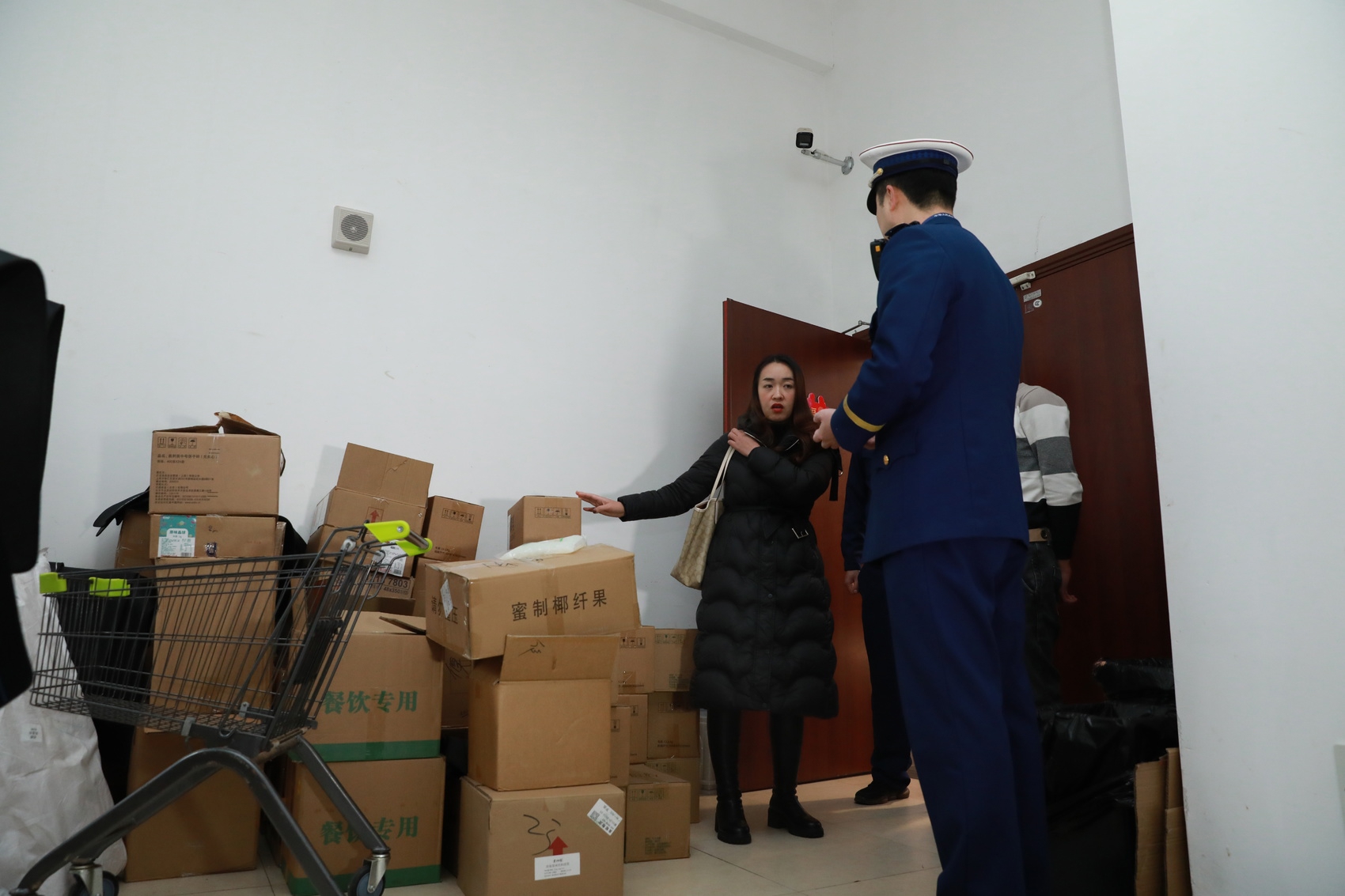 简阳一超市内疏散通道堆放大量货物。