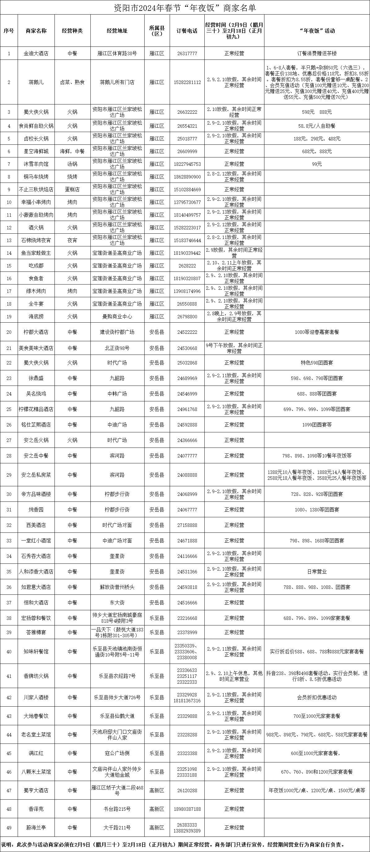 附:资阳市2024年春节“年夜饭”商家名单